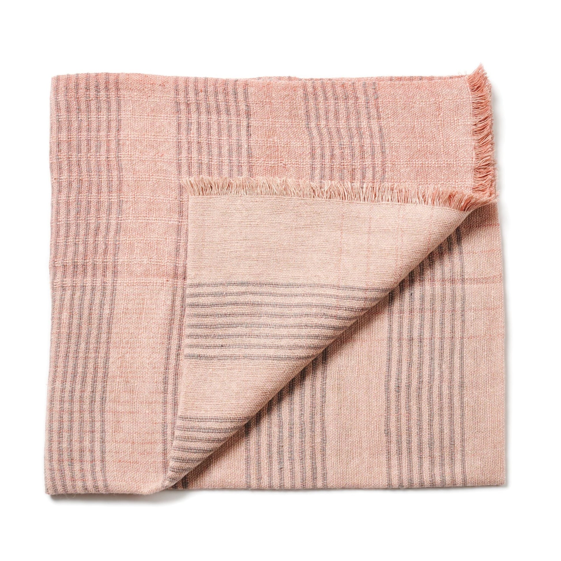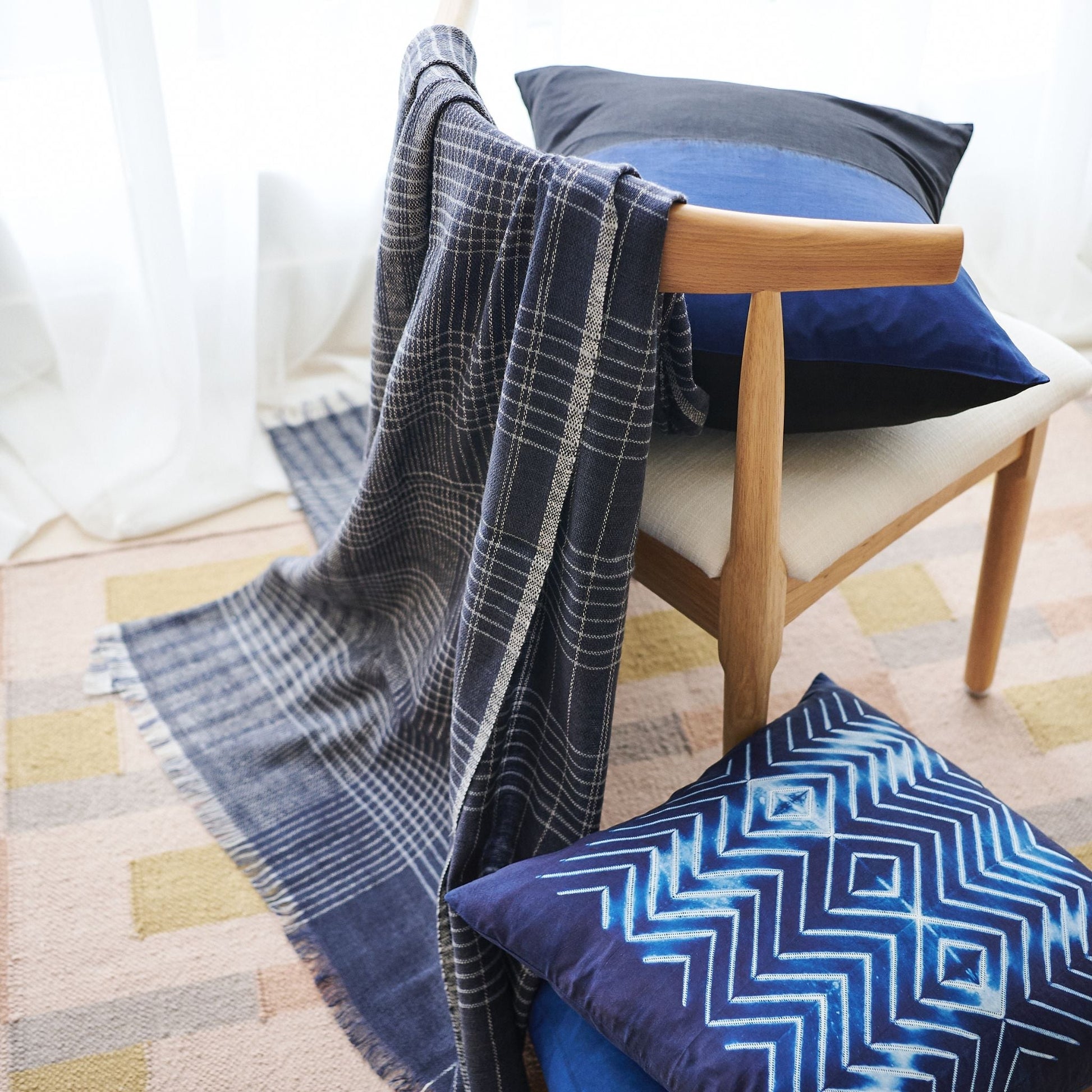Alloy Throw is a modern take on combining stripes & checks pattern in a classic color palette and fine detail of hand weaving done meticulously on a handwoven textile. Each piece is 100% handmade making it a unique sustainable throw which is both classic and minimal modern in its appeal. Alloy throw is soft to touch and wears well over time. Requiring attention to detail and finishing, this throw luxuriously combines heritage value. high quality craftsmanship & it is reversible to arrange and use. Fringes are kept short for a modern look. For this textile, we are using only the highest quality of 100% pure merino from Australia. Eco friendly dyes Swiss dyes are specifically engineered to promote the lifespan of each throw. As this luxurious piece is completely handmade from start to finish, each piece is unique. Classic in design, Alloy is a timeless throw / blanket will complement your personal or living spaces, is a thoughtful gift and also supports artisan communities ethically. Throw Size: 110 cm X 210 cm Material: 100% soft merino from Australia , 100% pure linen from Belgium. Colors: Alloy gray , navy and white Artisan base: Ethically & responsibly handwoven by artisans in Nepal. Wash care: Gently hand wash using gentle detergents. Hang dry in cool shaded place or delicately dry clean only. What Makes Your Purchase Sustainable ? Eco friendly dyes free of toxic chemicals used. Support employment of women artisans. 100% handmade ethical manufacturing process by artisans. Uses only 100% natural responsibly sourced materials. Small batch production ensures higher quality & less wastage. Note : Silica Chalk Throw is available in stock Sept 2025 onwards.