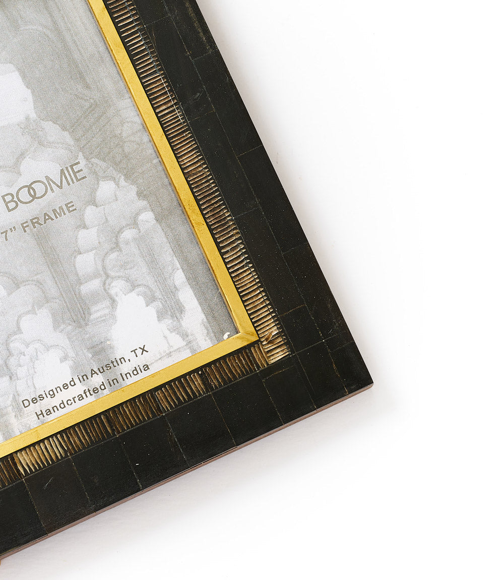 Andhera 5x7 Black Picture Frame - Carved Horn, Brass Inlay