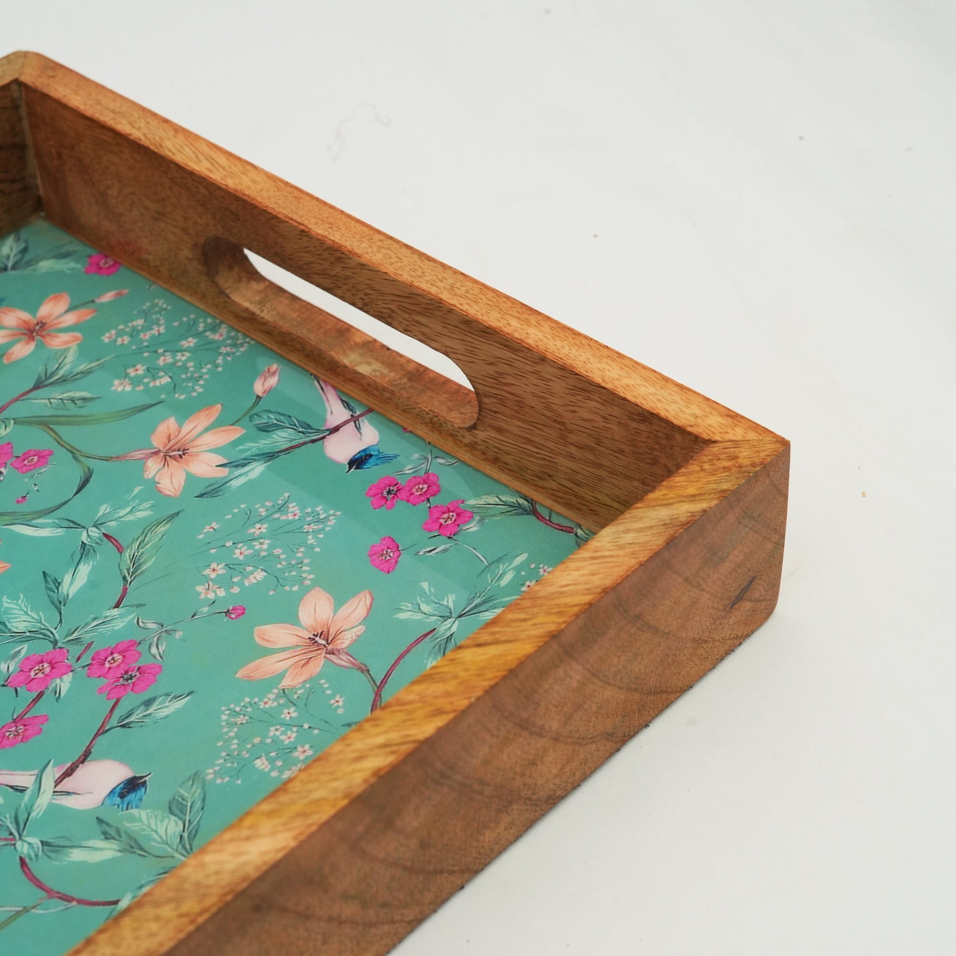 Infuse your space with sunshine using the Sunburst Bloom Tray, showcasing a radiant yellow floral enamel design set within a handcrafted mango wood frame. Measuring 10" x 10" x 2", this square tray is ideal for serving drinks, organizing vanity items, or displaying candles and small décor. Made from sustainable mango wood, with a smooth, glossy enamel top, it offers both function and flair. A charming accent piece and a thoughtful gift for those who love vibrant, handcrafted home accessories.