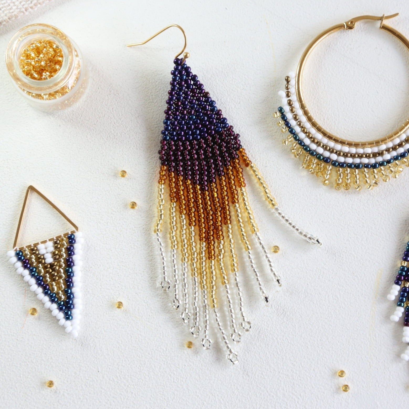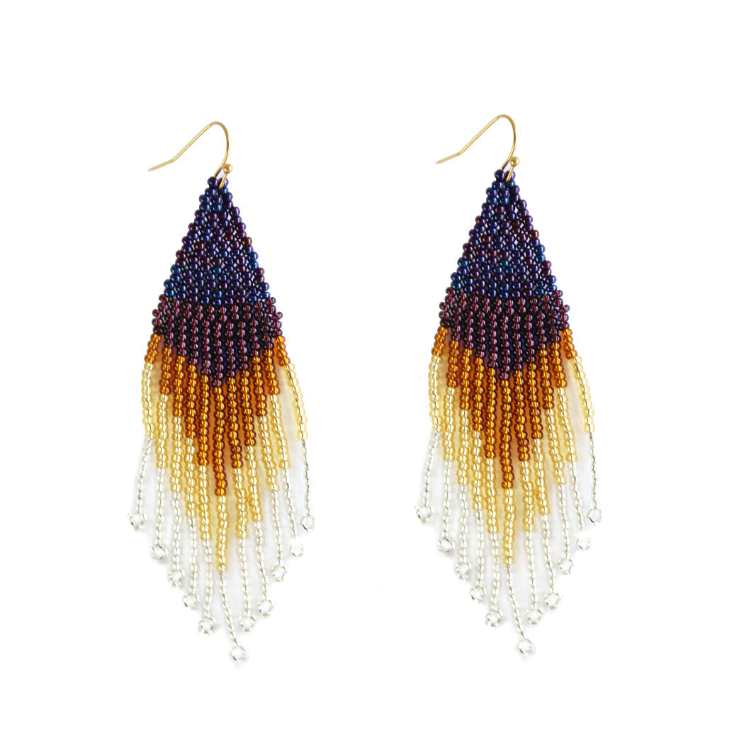 Classic colors in a cool ombre design. Navy, copper, gold and silver make this pair a no-brainer for mixing metals in layering necklaces or bracelets. Finished with stainless steel hardware for comfort and longevity.