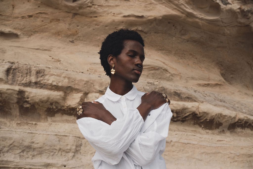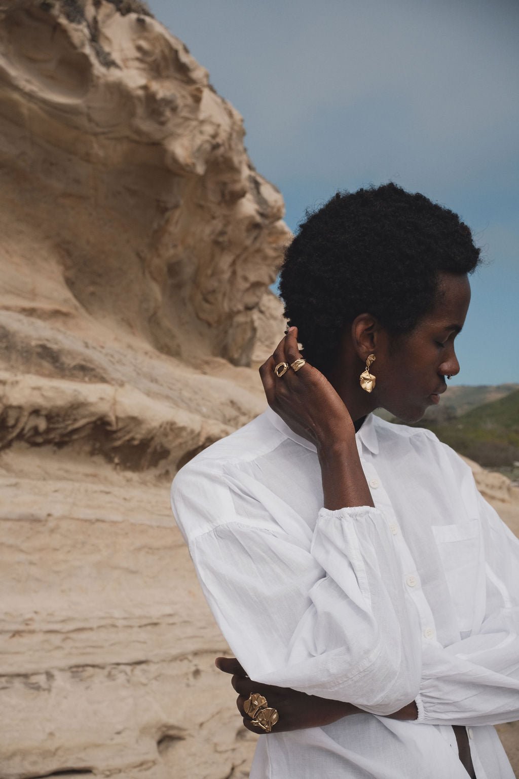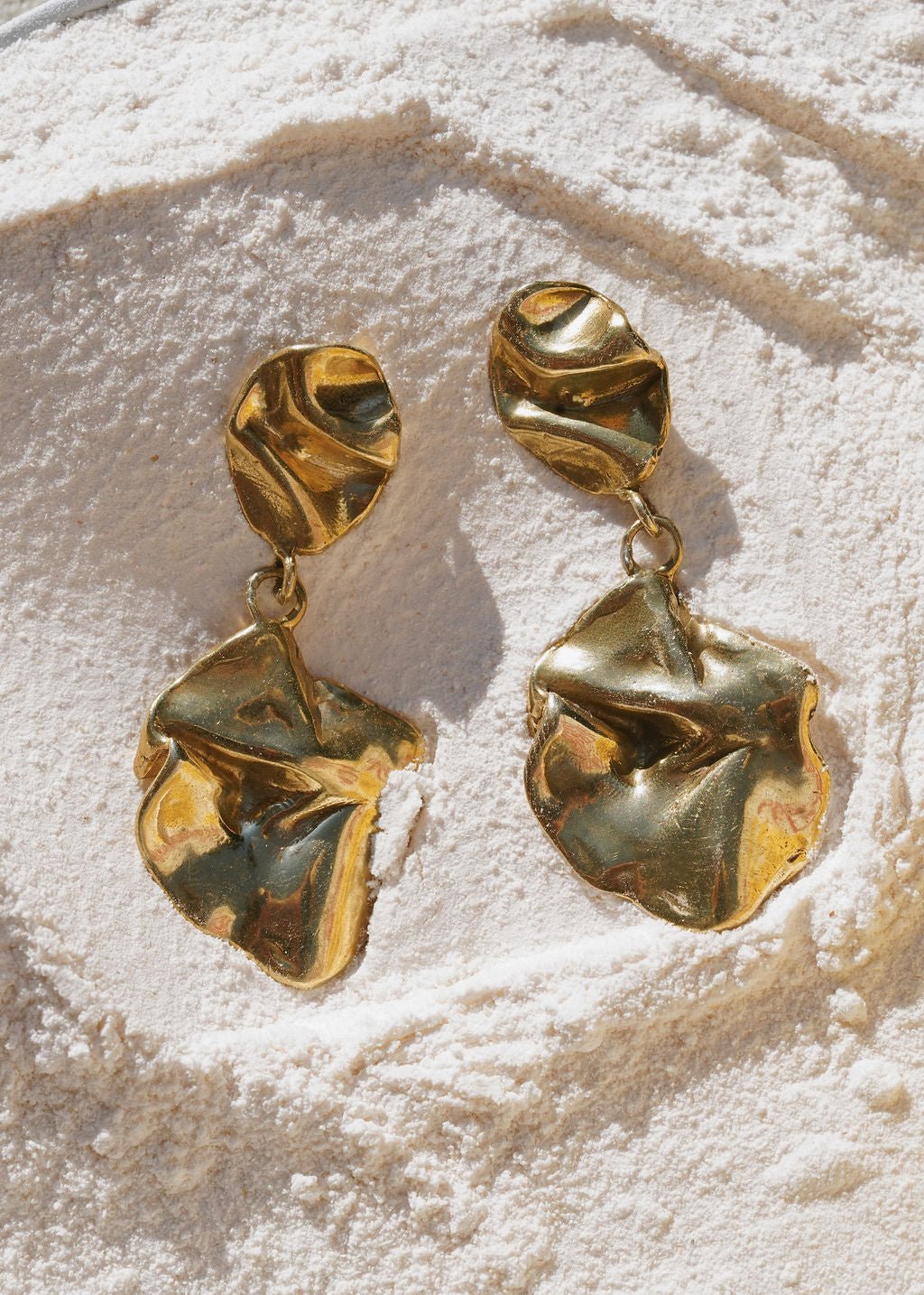 Elevate your style with our Bajada Gold Double Drop Earrings. Crafted in golden brass, these lightweight drop earring's organic undulating design will create a unique and eye-catching look.