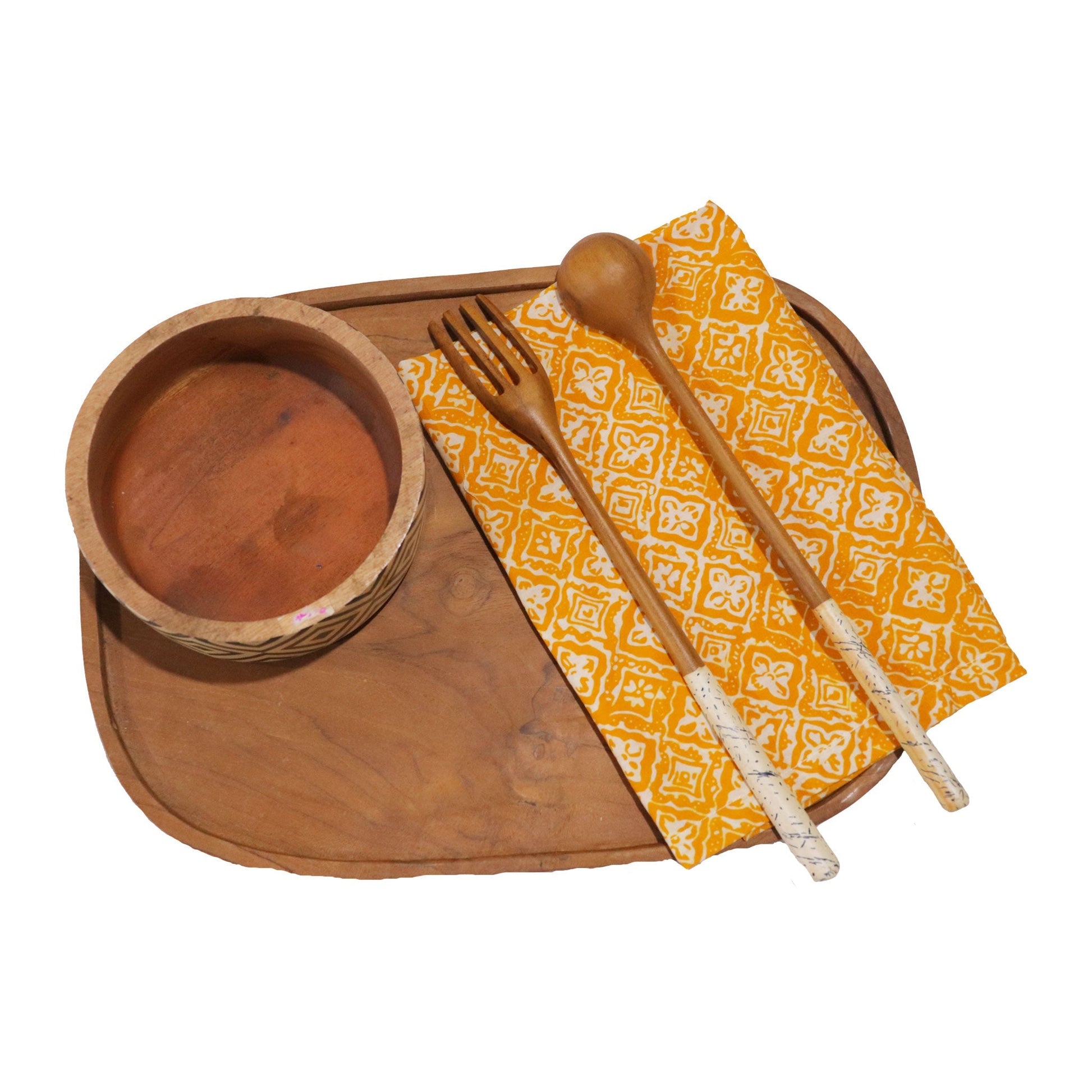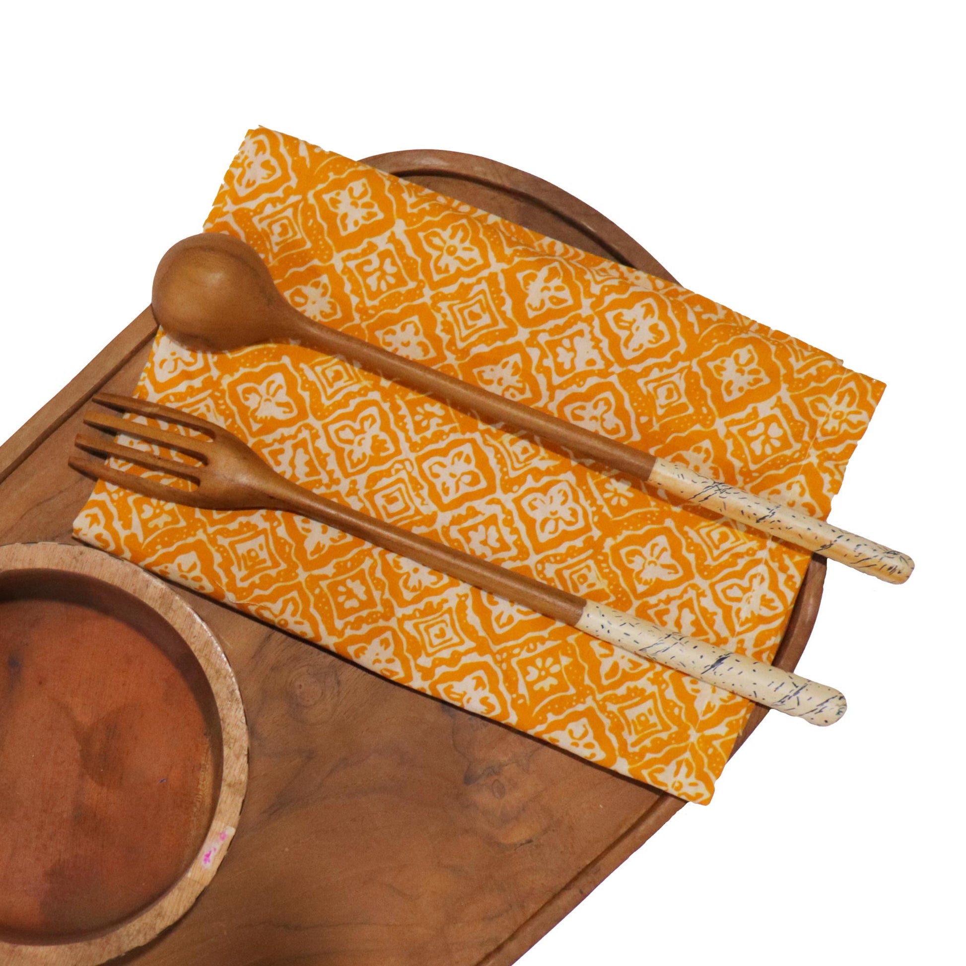 Batik Cloth Napkin Set of Four, Kamboja, Hand Dyed, 100% Cotton, Mustard, Yellow, Brown