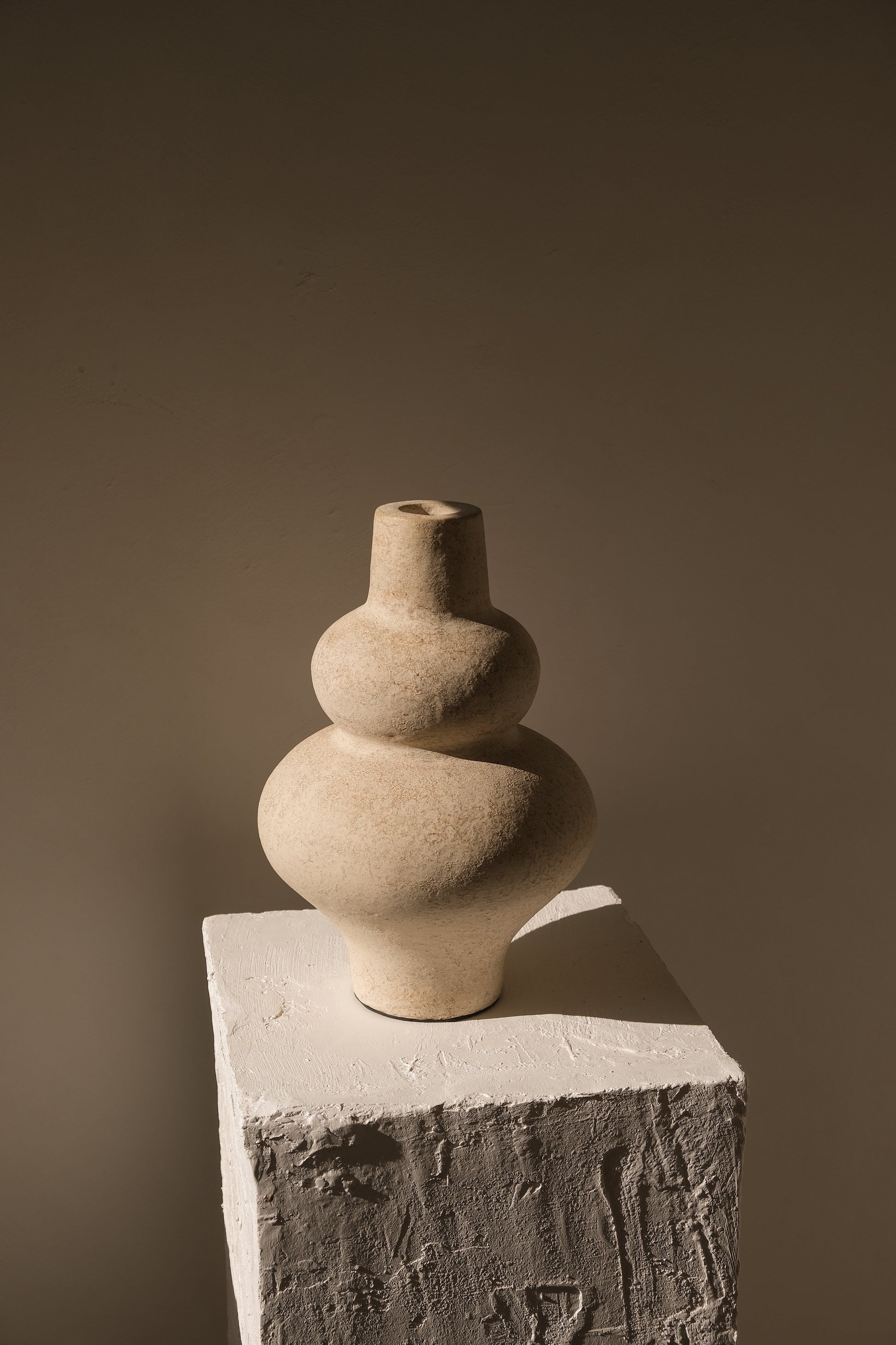 The Batu vessel is a stunning terracotta vessel handmade by talented Indonesian artisans. Inspired by temple shapes as seen in sacred structures in Indonesia, this masterpiece blends timeless appeal and exceptional craftsmanship into one captivating two-tiered sculpture using a technique that has been passed down from generations to generations. Its organic shade coupled with a vintage inspired finish contributes to its highly sophisticated look and feel. This vessel can be used as a vase for dry stems or as a standalone decorative piece on shelves or tabletops. Embrace the beauty and heritage of Indonesia in your living space with the Batu vessel.