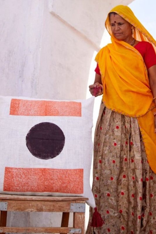 Each pillow sham is handmade, requiring attention from 4 artisans, including wood-block carvers, hand-printers, sewists, and dye specialists.