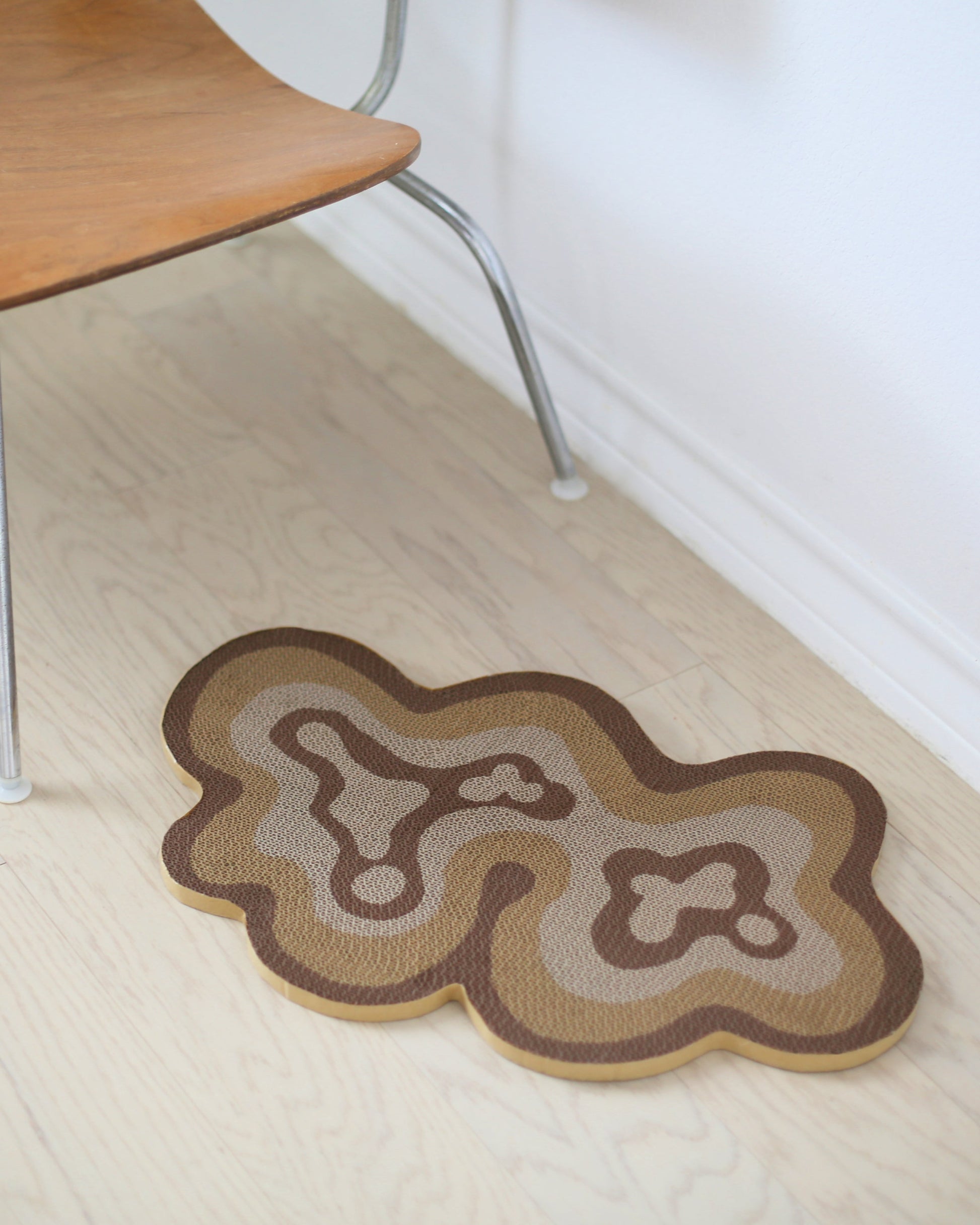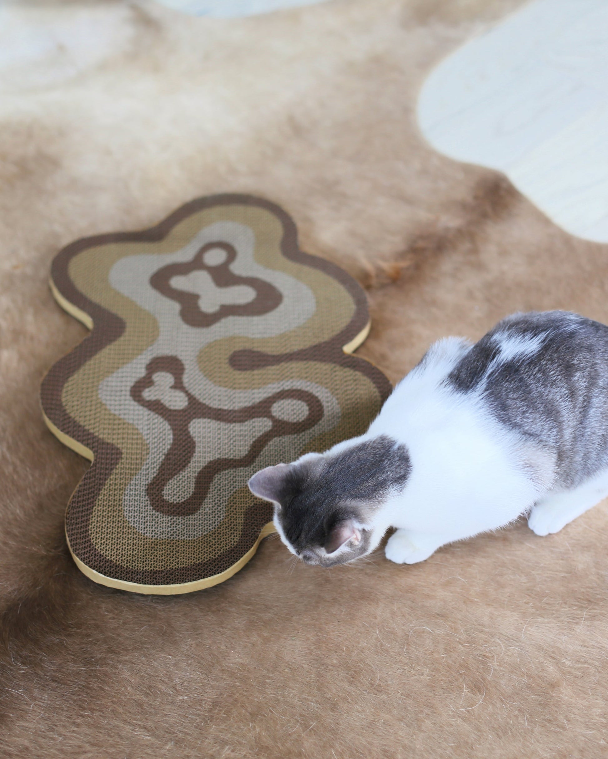 Named after its unique abstract organic design resembling natural flowing landscapes, Bloom is a reversible cat scratcher merging practicality with an artistic touch. Its neutral color palette and elegant curves make it a discreet yet playful addition to your home decor while encouraging your cat's natural scratching behavior. Crafted from eco-friendly corrugated cardboard, Bloom safeguards furniture, nurtures natural instincts, and elevates your home sustainably all at once.