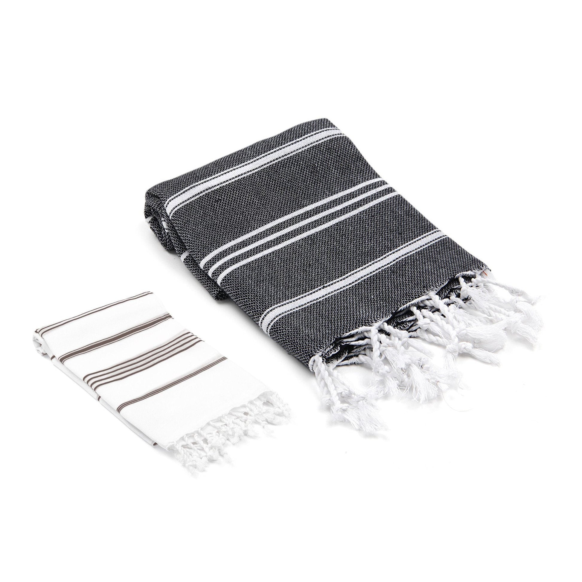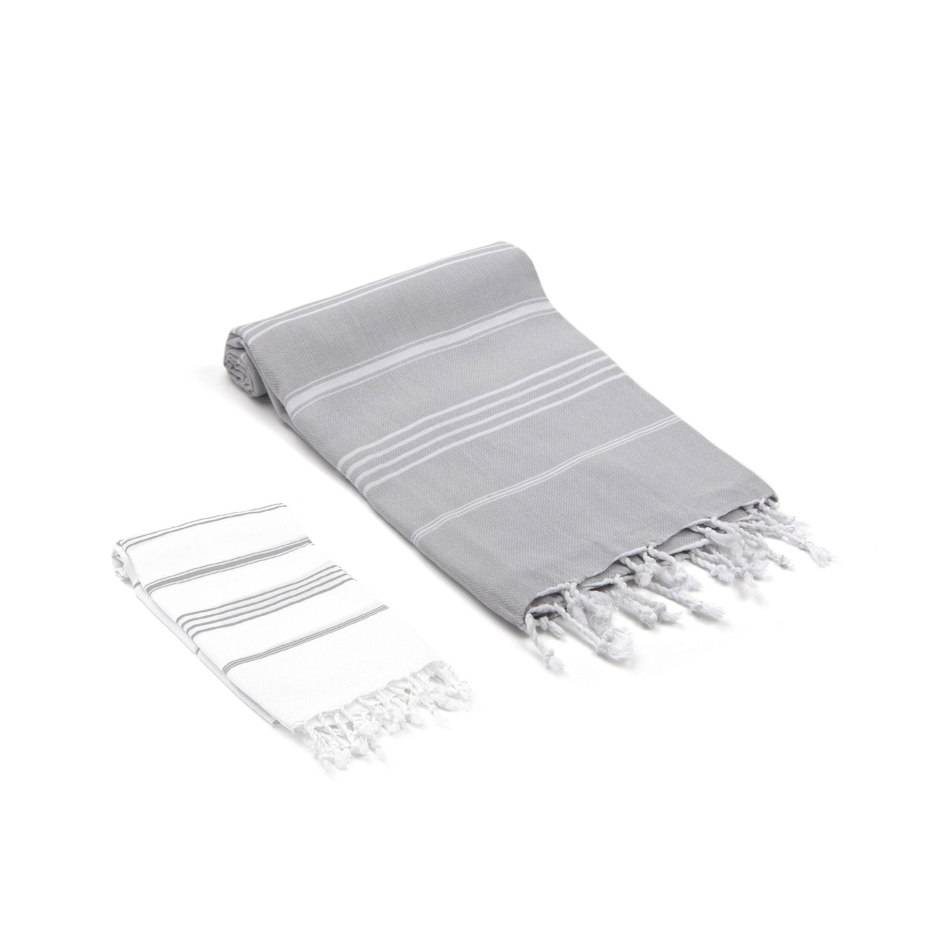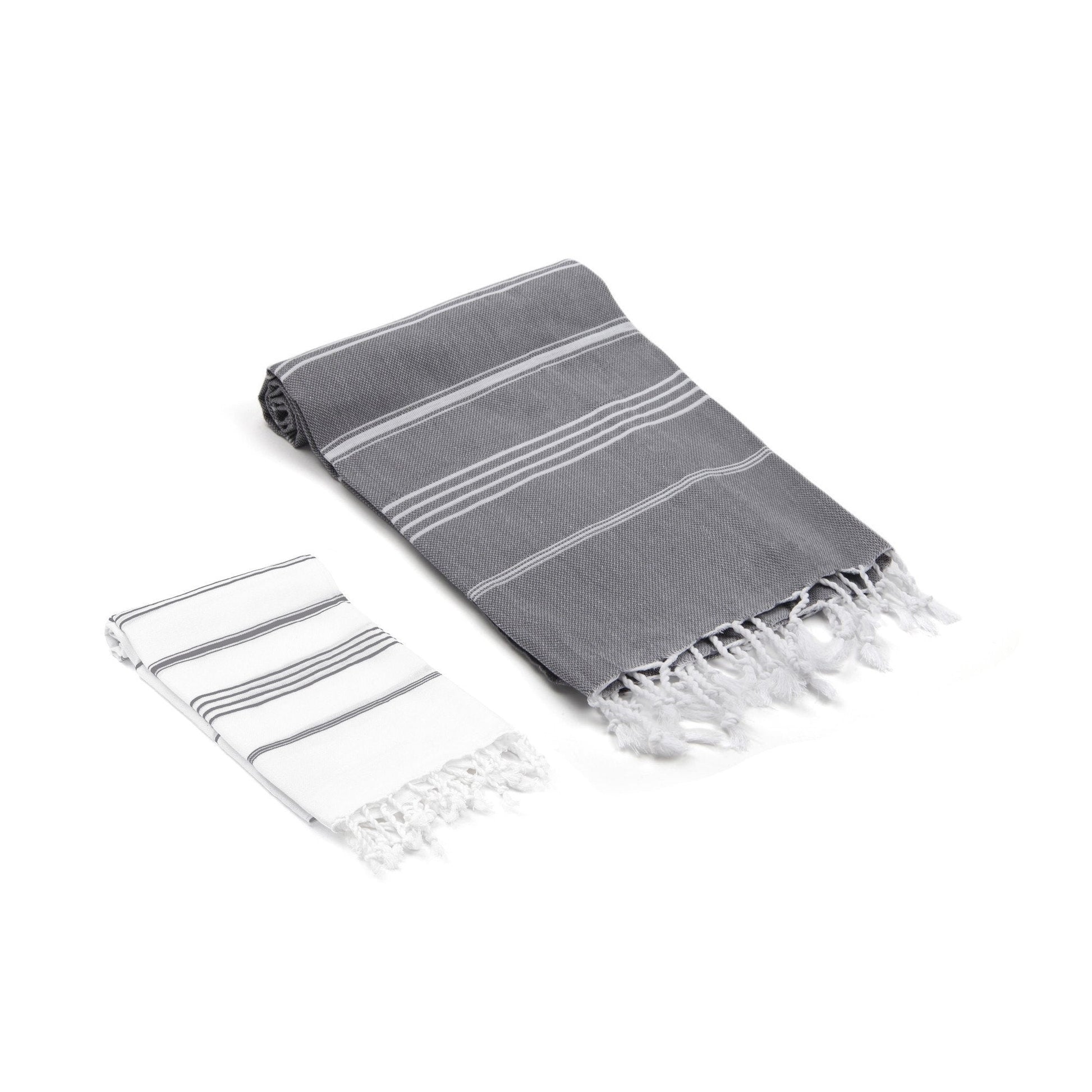 Meet the Bodrum / Datca Turkish Towel Set; This set is a perfect addition to your master suite or guest bathroom. It is hand loomed from the finest Turkish cotton and every bit as light and absorbent as all our other peshtemals. The set includes a full size bath sheet and a generously sized hand towel packaged individually.
