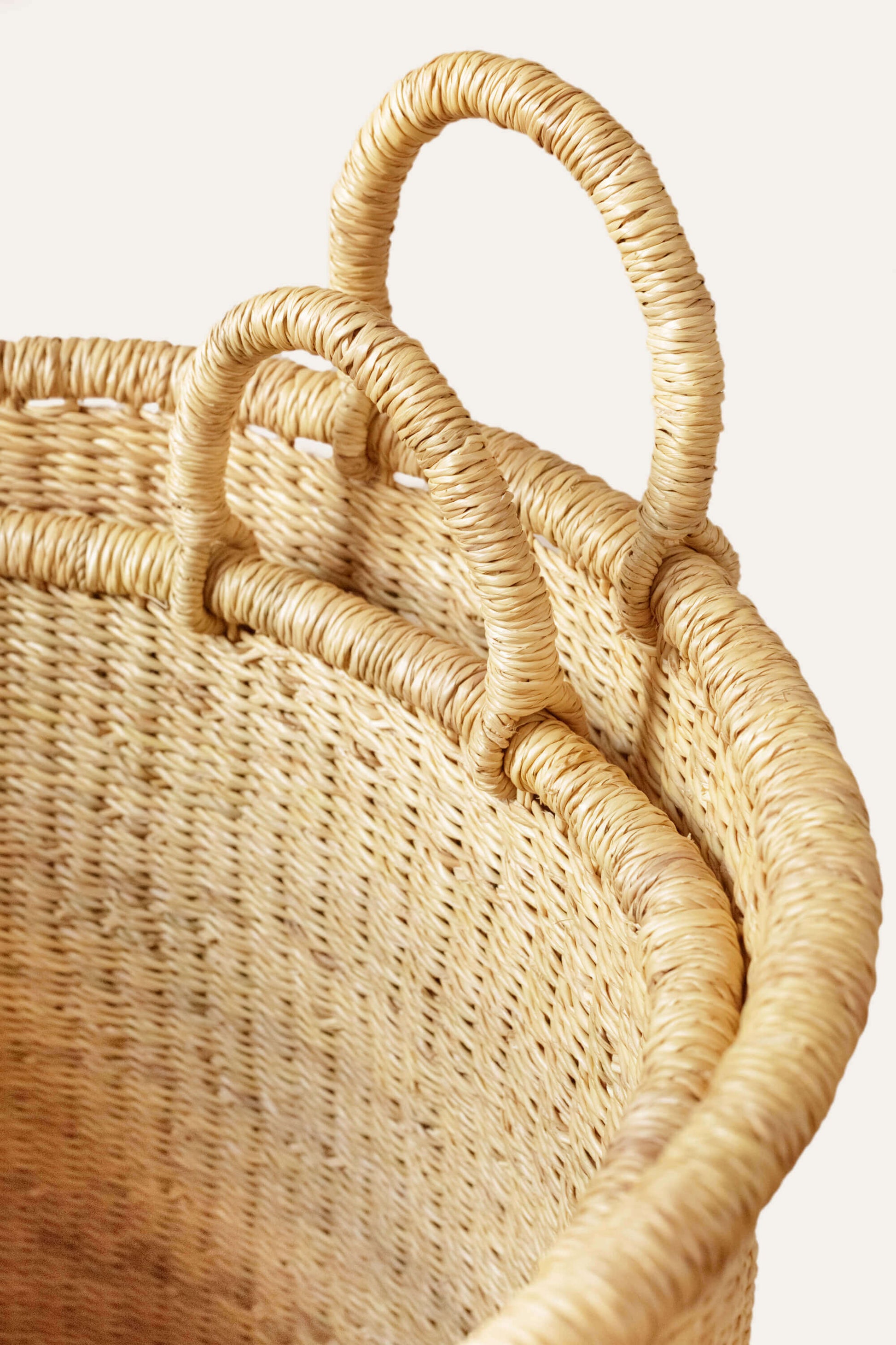Store messes in style with the new Bolga Hamper Baskets! Handmade in Ghana, this floor basket comes as a set of 2 and features double handles for easy carry.