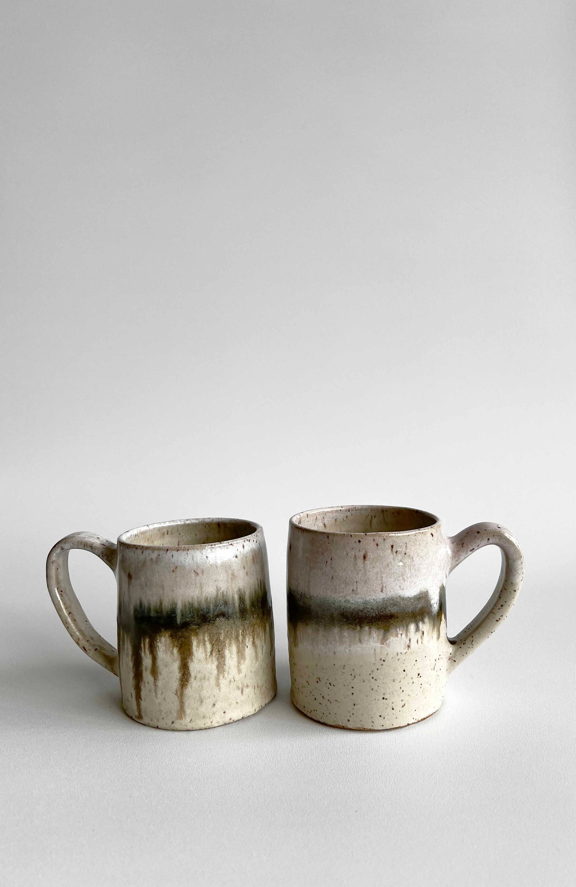 The Borealis Mug in Dawn is a unique artisanal creation, showcasing a breathtaking glaze reminiscent of the Aurora Borealis. Crafted from brown stoneware clay with flecks, it boasts both visual appeal and functionality. Its delicate white and pink interior, adorned with beige, bronze, and white hues, makes it a captivating addition to any table setting. The beauty of this combo is that no two are ever the same. Some of the mugs have more of a stripe of bronze while in other firings it runs. I have no control over this and please note this is part of the charm of handmade. These are final sale. See the photos for a better understanding of these variations. Approximate dimensions: 4 inches in height x 4 inches in width. Holds 16 fluid ounces. Safe for use in both microwaves and dishwashers. Each mug is sold separately. *All of my products are made by hand and will vary. Each glaze firing varies as well. Please keep this and my refund policy in mind when you place your order. Thank you.