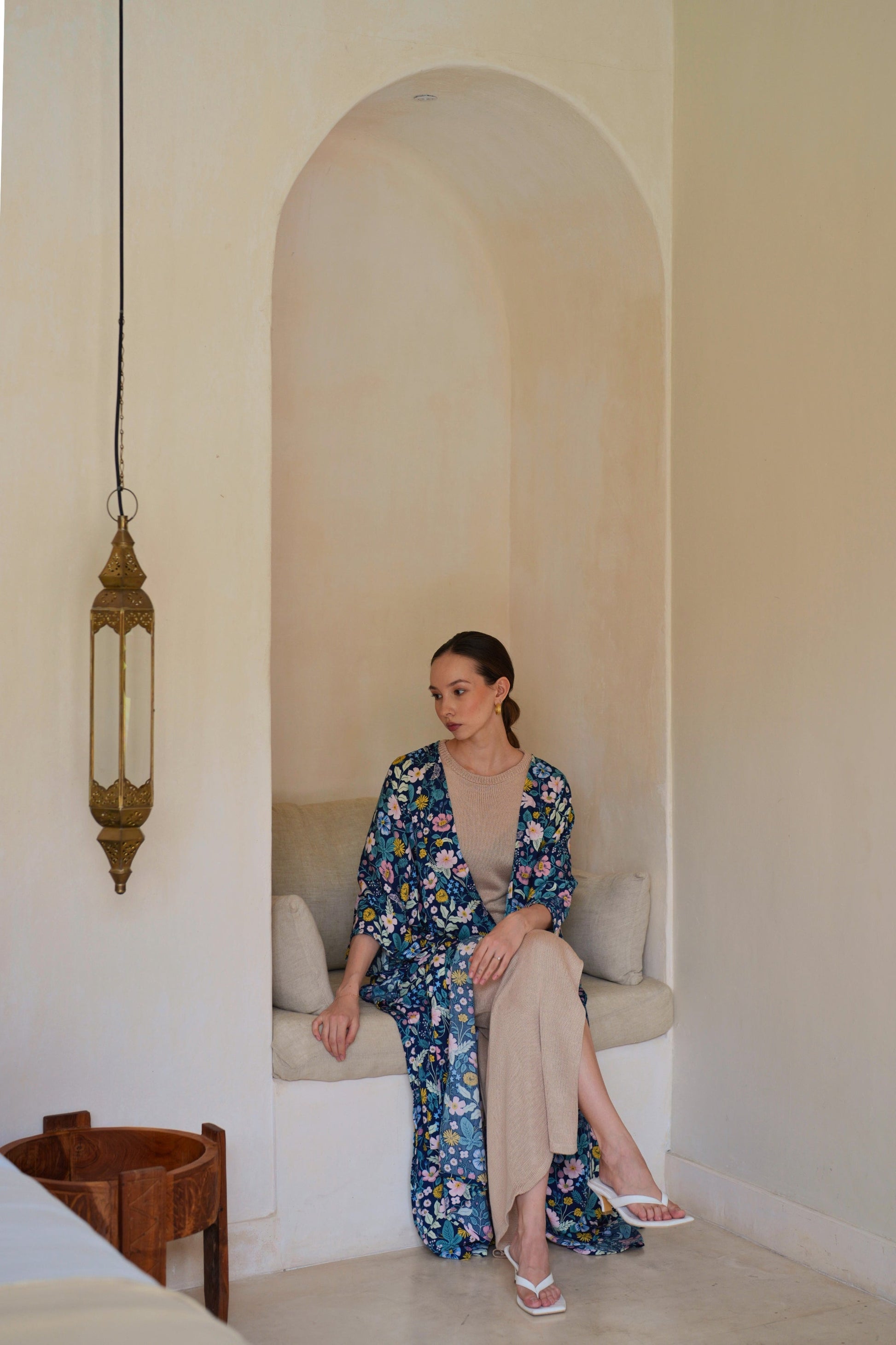 Botanical-Print Travel Kimono Duster