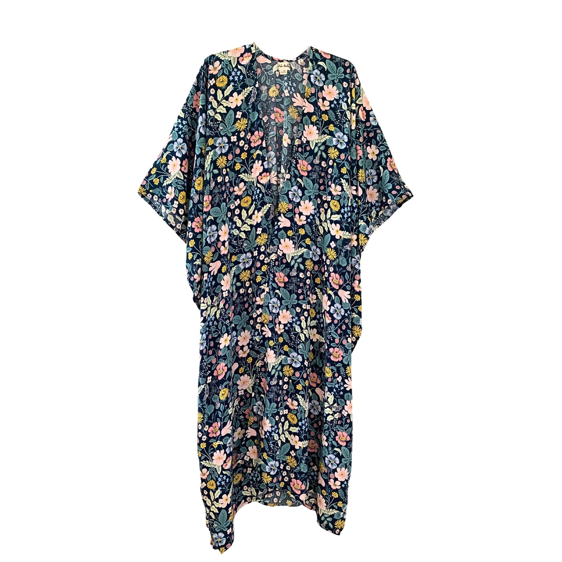 Bring out the fun day with this maxi long length kimono, featuring a tropical print pattern for the ultimate stand-out piece and a perfect piece to throw on for lounging by the pool or over swimsuit to give an aura of effortless luxury. Come with a matching belt that help you easily change to different looks throughout the day. We created garments that are meant to last season after season. Each garment is carefully tailored made by our small team of women artisans in Bali from the comfort of their own homes. Our model is 5’7“ Size S and is wearing One Size. Lay flat measurement: Shoulder to hem 50”. Come with a matching belt. Handwash cold. Lay flat to dry. 100% Rayon. Handmade with love. Shipping & Returns: Return accepted for store credit only. Please see our Shipping & Returns page for more details.