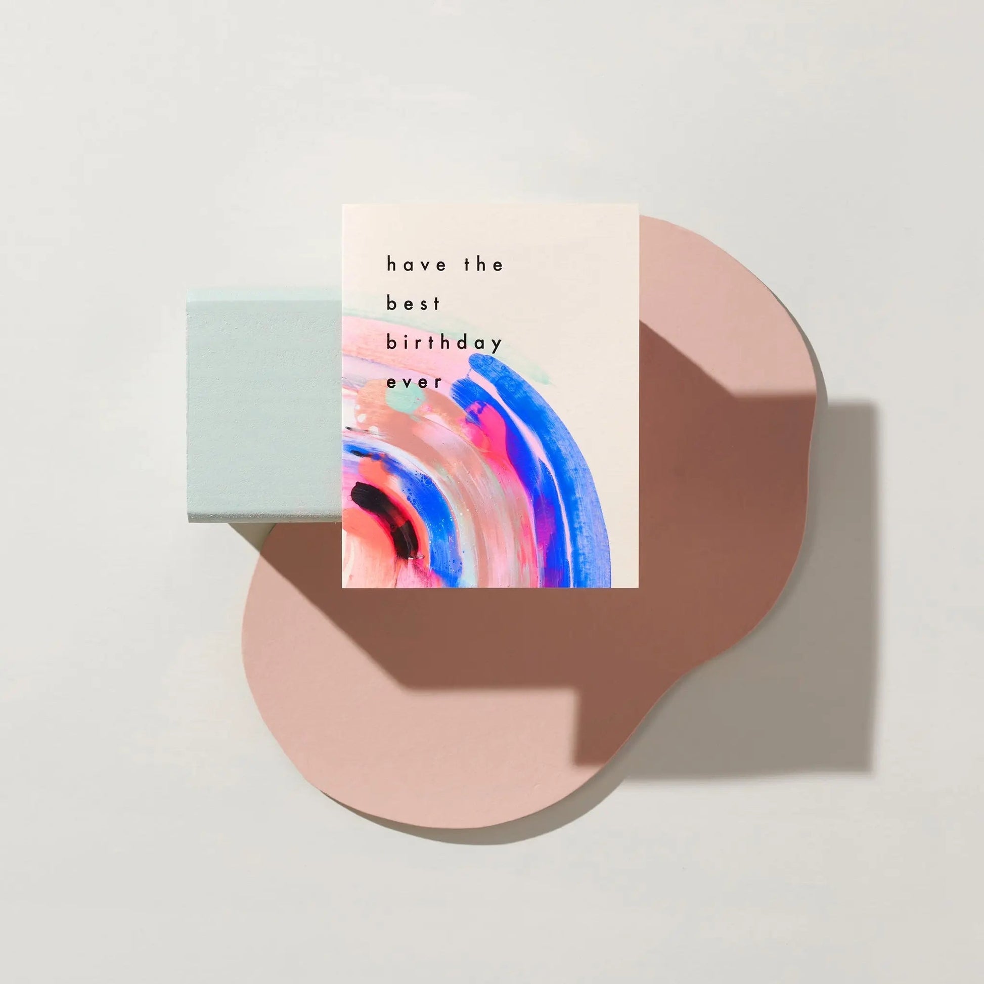 Each card is hand painted on large pieces of card stock before foil stamping on one of our antique foil presses. The result is a completely one of a kind card. This card uses our swirl paint process.