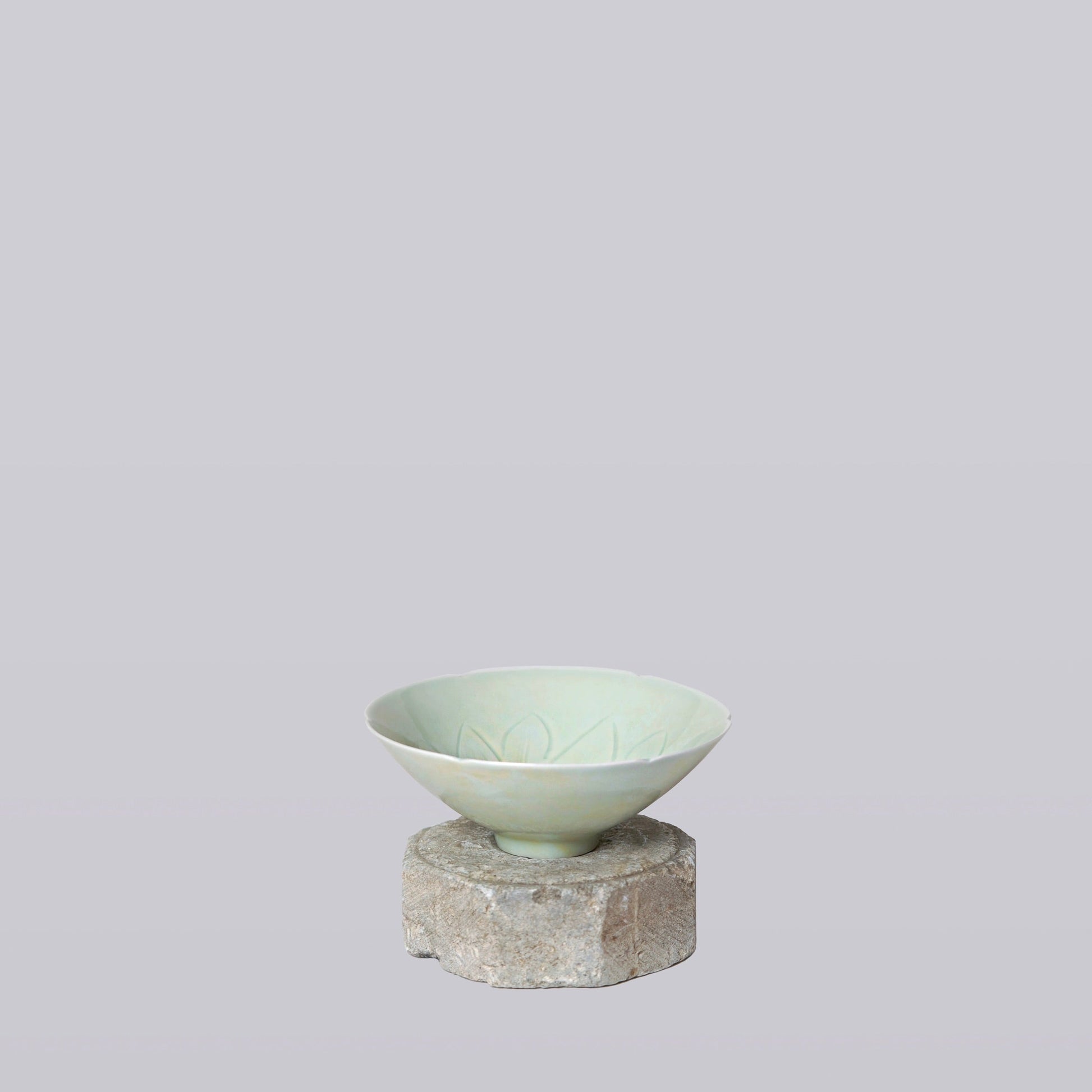 Cobalt Guild offers an assortment of blue and white porcelain vessels from the antiques markets of Jingdezhen, a town long distinguished by imperial patronage. This piece is a small hand made bowl with an incised lotus motif in a Song Dynasty minimalist style, 5 1/8" x 2"