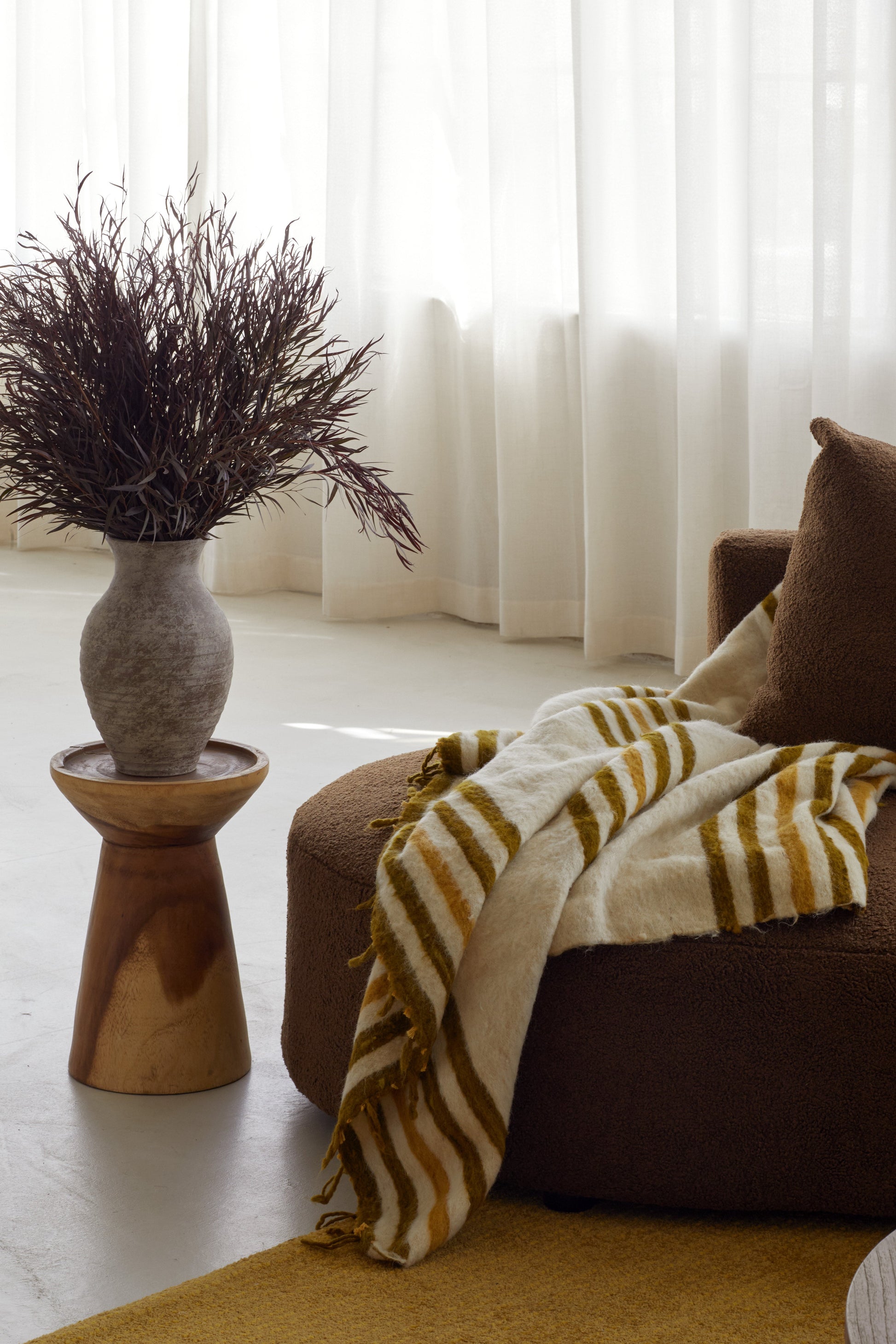 The Celeste Momo Blanket exemplifies artisanal mastery, meticulously handcrafted by Mayan artisans from an exquisite blend of locally sourced cotton (10%) and wool (90%) from indigenous sheep in Guatemala's western highlands. Each blanket is skillfully hand-loomed on traditional wooden looms, upholding a commitment to authenticity and exceptional craftsmanship. Distinguished by their versatility and enduring quality, these substantial blankets serve as ideal bed toppers for cooler weather. Offered in a selection of cayenne or olive and gold, they combine both warmth and sophisticated charm.