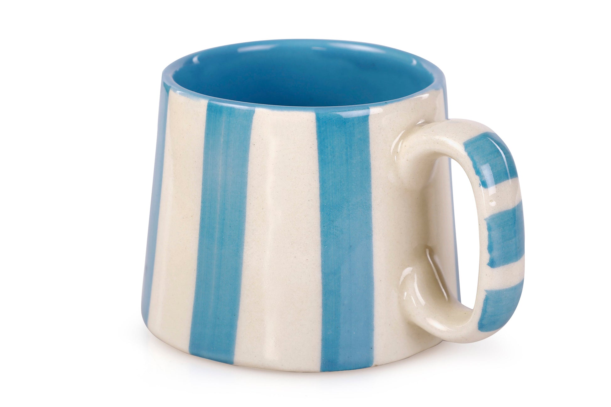 Elevate your coffee or tea game with the Casa Amarosa ceramic tea coffee cup featuring a blue stripe design. Made from high-quality ceramic material, this cup is sleek and durable, perfect for any modern home or office. The wide opening and ergonomic handle make it easy and comfortable to use. Order now and add a touch of sophistication to your daily routine with this stylish ceramic coffee cup from Casa Amarosa. This ceramic tea coffee cup is not only practical but also a great way to add some style to your summer routine. It's the perfect gift for anyone who loves unique and sophisticated drinkware. Order now and elevate your coffee or tea game with this sleek and modern ceramic coffee cup from Casa Amarosa. • Material - Ceramic• Size- Dia 3. 5 Inch x Height 2. 5 Inch• Weight - 280 gms• Capacity - 220 ml• Color - Blue• Hand Made by artisan• Perfect Cup for Coffee & Tea