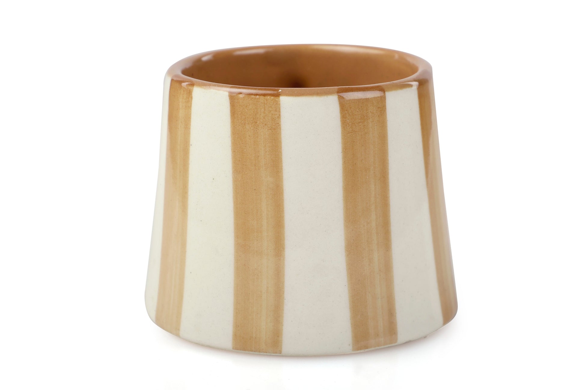 Ceramic Brown Stripe Coffee cup - 3.5 x 2.5 Inches ( Set of 2 )