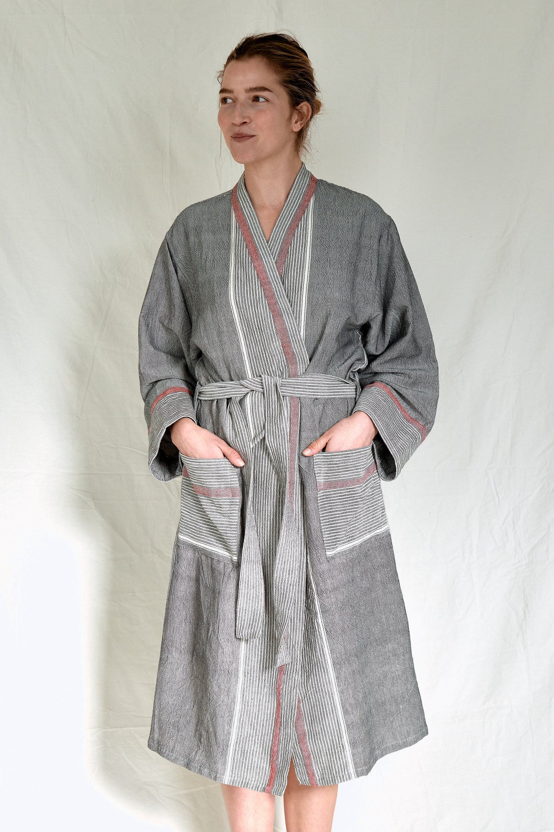 Crafted on the coast of Turkey, our Charcoal Tribeca Long Robe is hand loomed using traditional techniques and woven with 100% premium Turkish cotton. Similar to a Turkish towel, it is highly absorbent, lightweight, eco-friendly, and quick to dry. Lounge in your robe by the sea or layer it over a lightweight dress. Experience how your robe becomes softer and better with each and every wash!