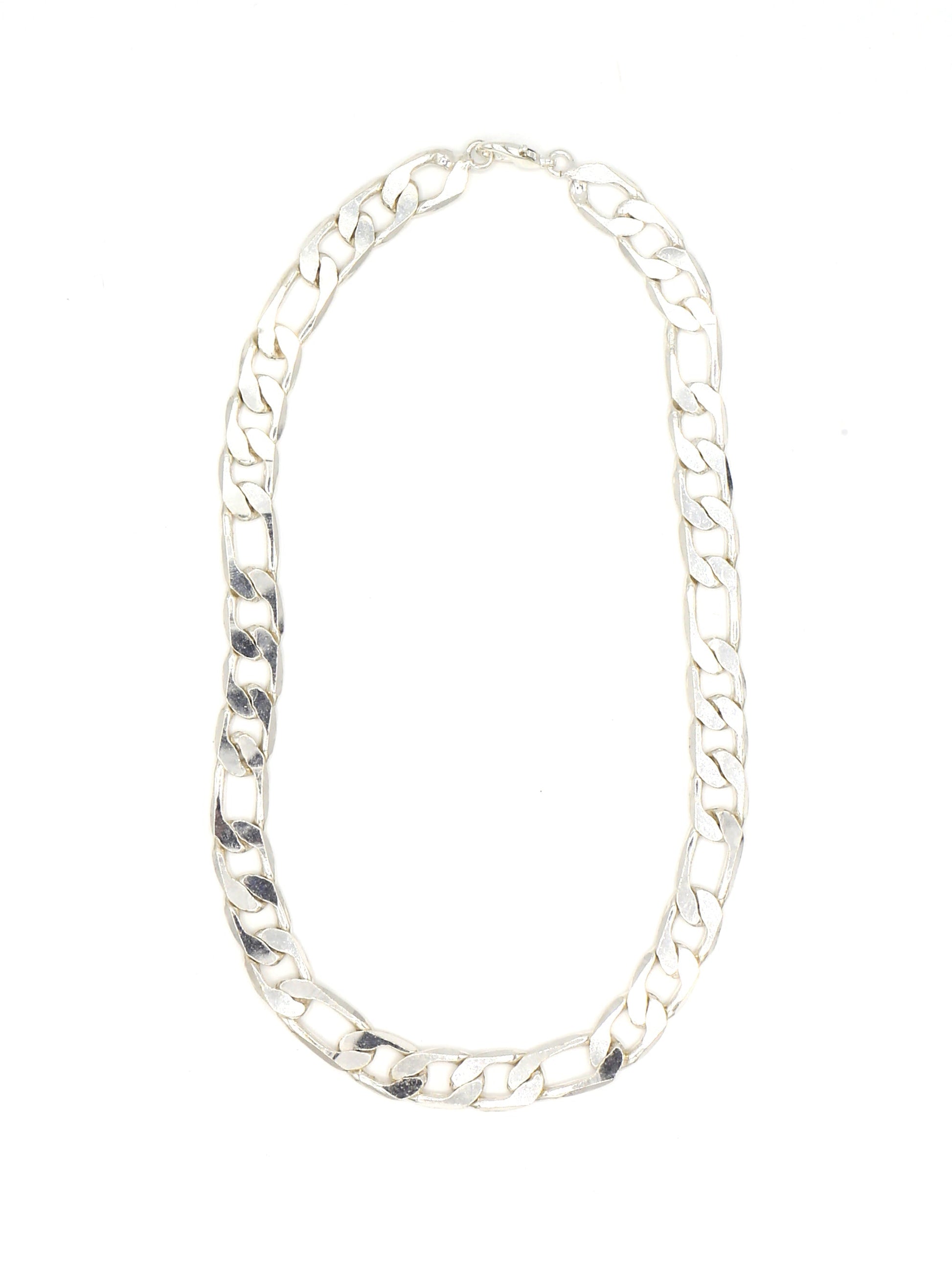 Silver necklace measures 18". Silver-plated recycled metal. Nickel-free.