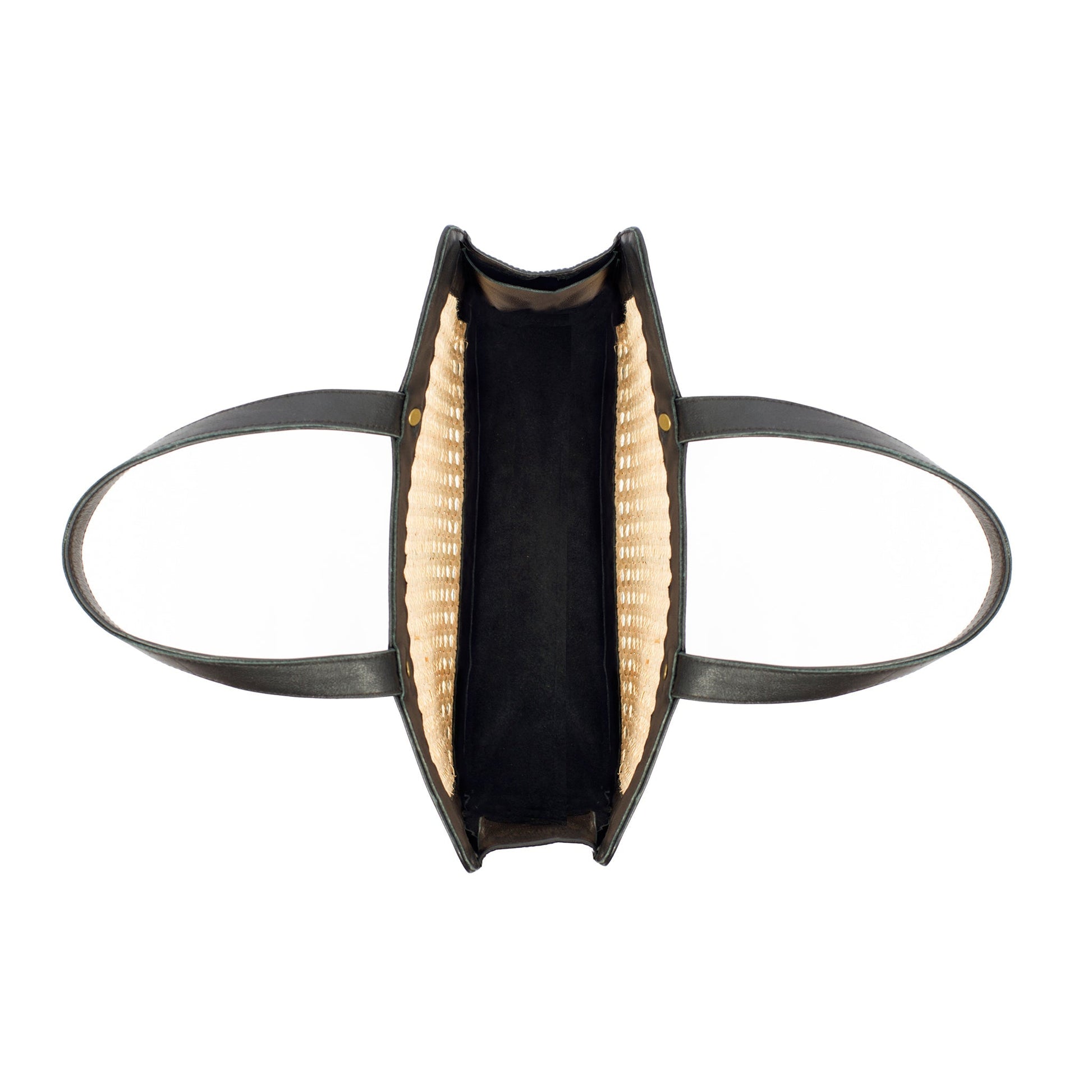 Classic Rattan and Black Leather Tote Shoulder Bag