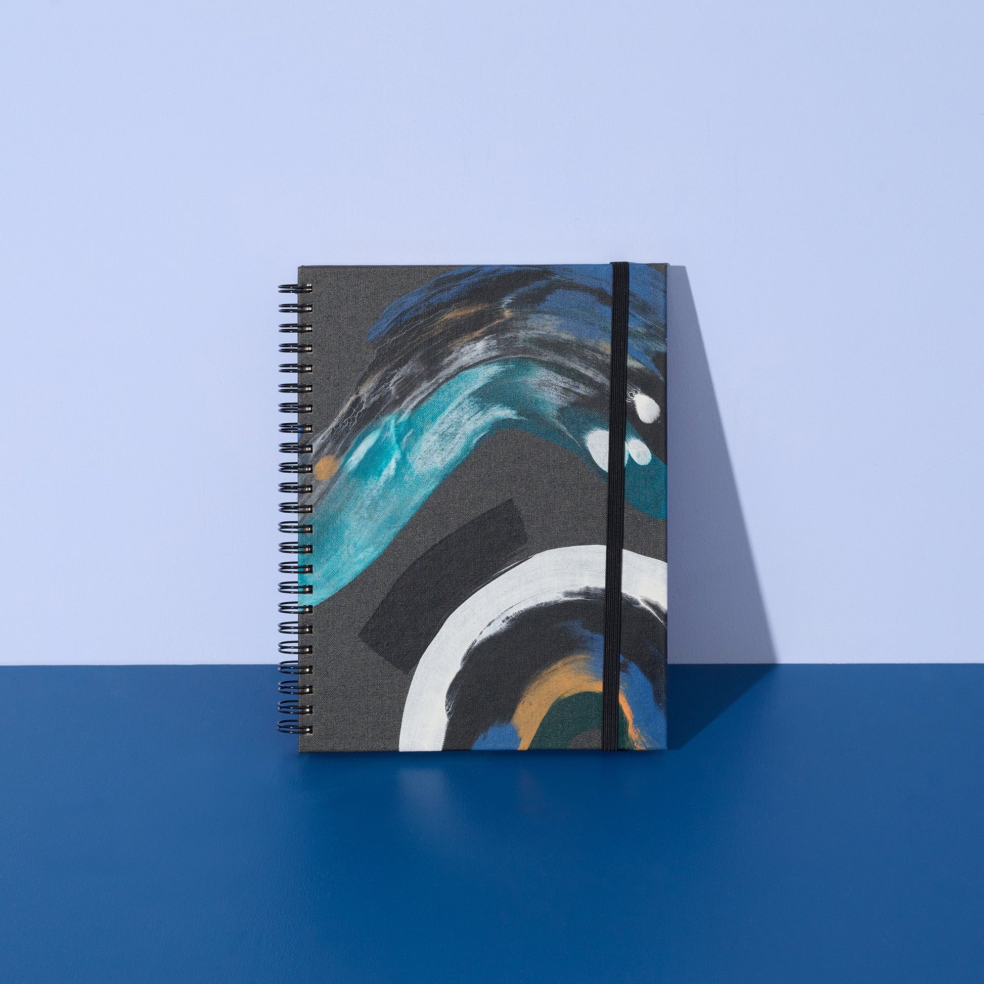Hand-painted cloth cover with high quality wire binding. Both cover and back cover are hand painted, making each notebook completely one of a kind.
