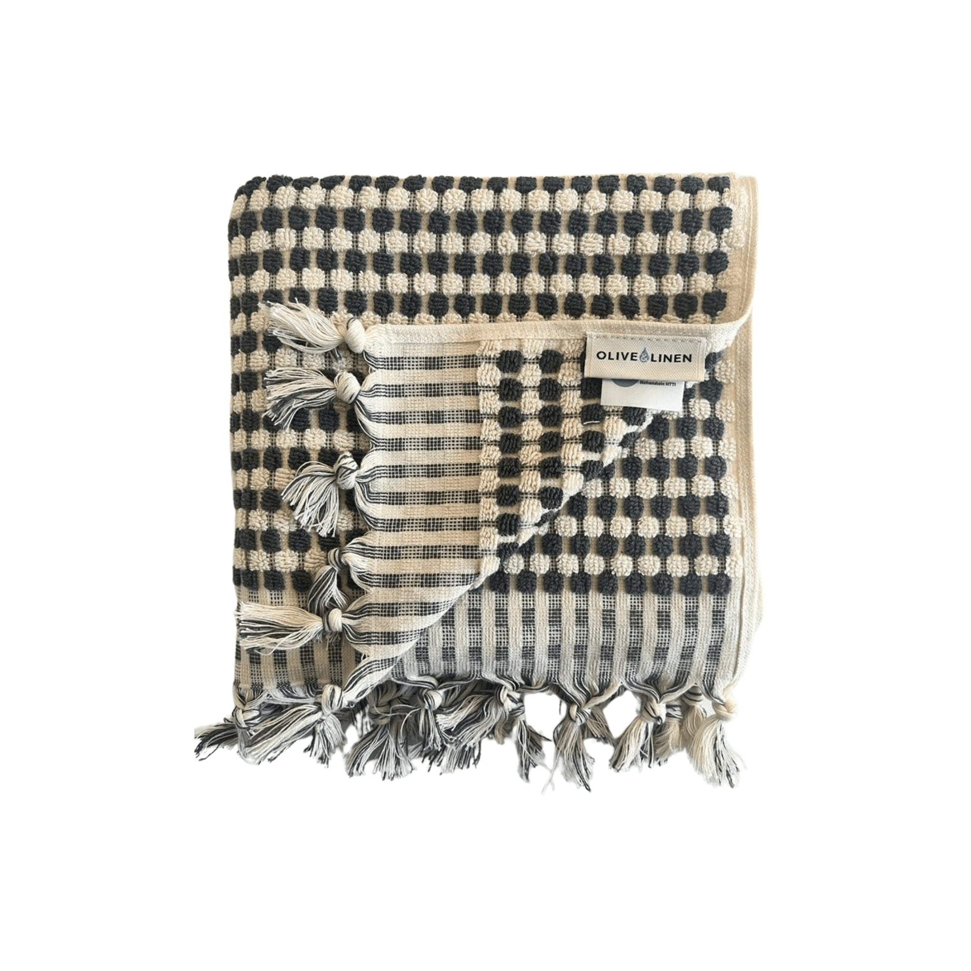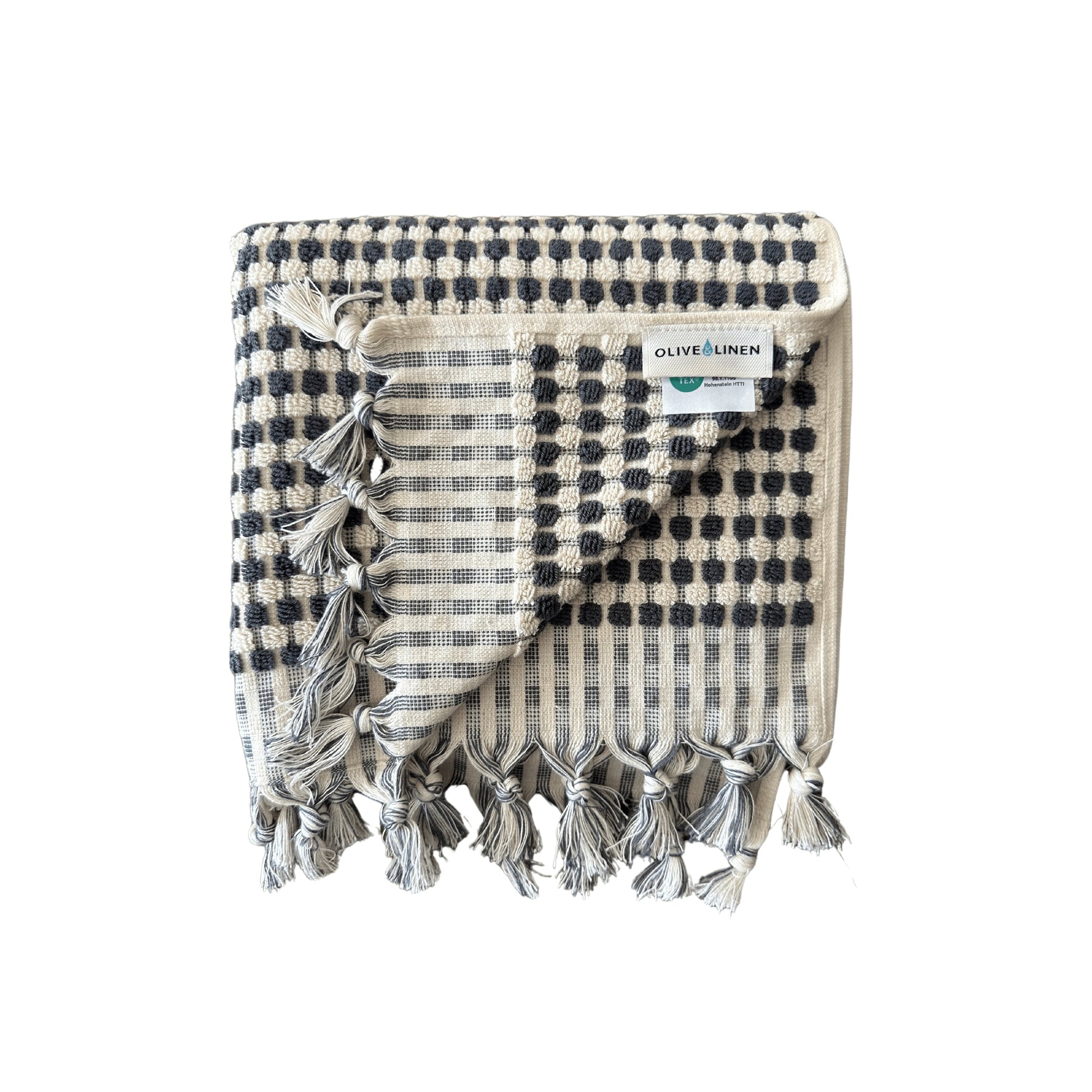 Meet the newest addition to our hand towel collection! Dots Hand Towel is perfect for those who prefer their towels to be thicker. Still hand loomed from 100% Premium Turkish Cotton in a beautiful pattern of dots in beautiful colors or timeless black&white. Luxuriously soft, ultra plush and extremely absorbent.