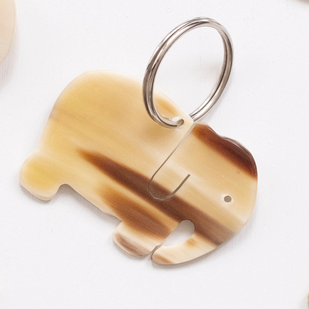 An elephant never forgets where you put your keys. Elephant keychain carved out of horn - Assorted color tones.