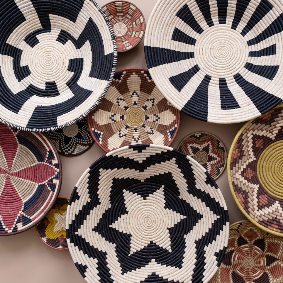 Weavers hand make each basket from home while tending to other household duties. Baskets can take days to weeks to complete with artists weaving 3 or so hours per day while balancing other responsibilities.