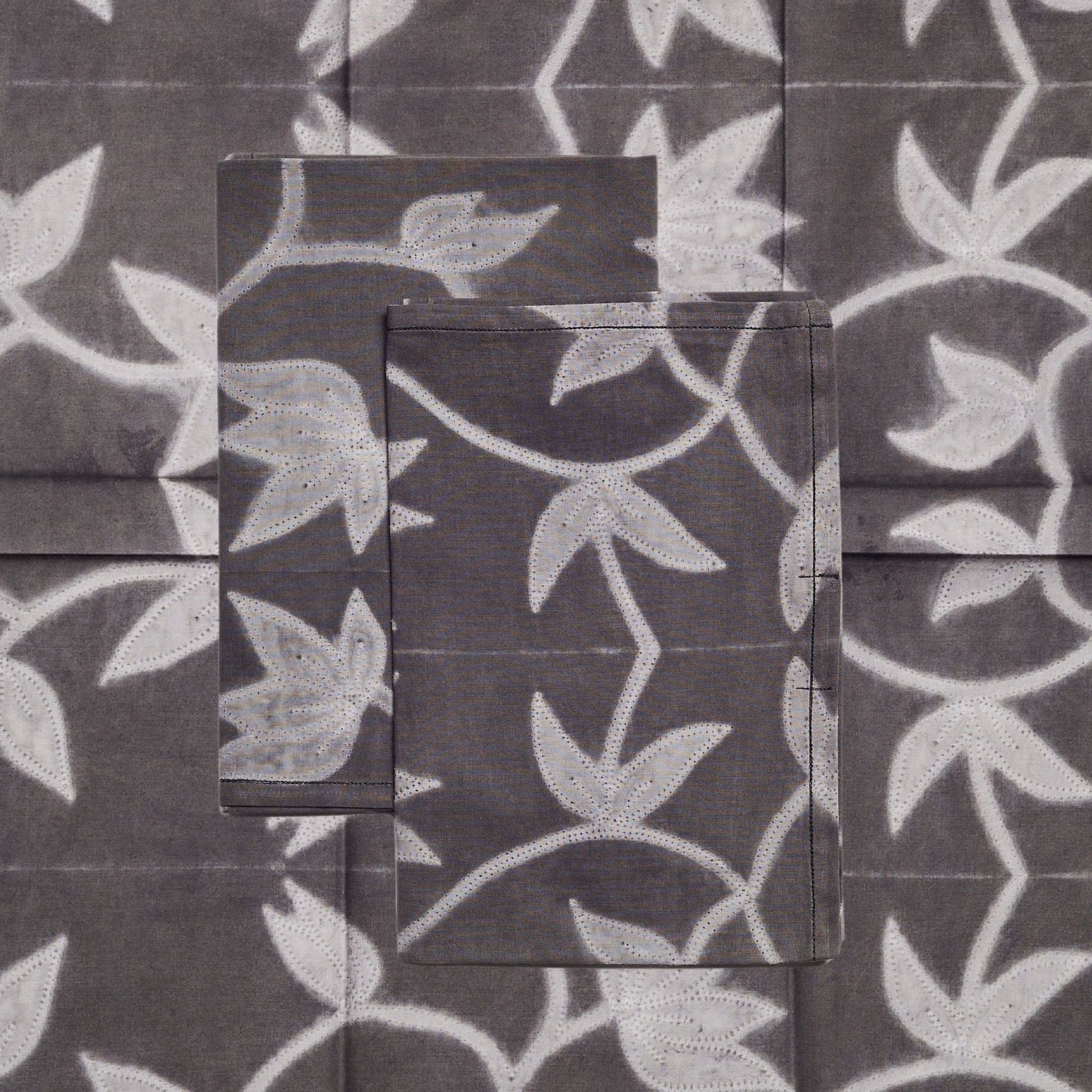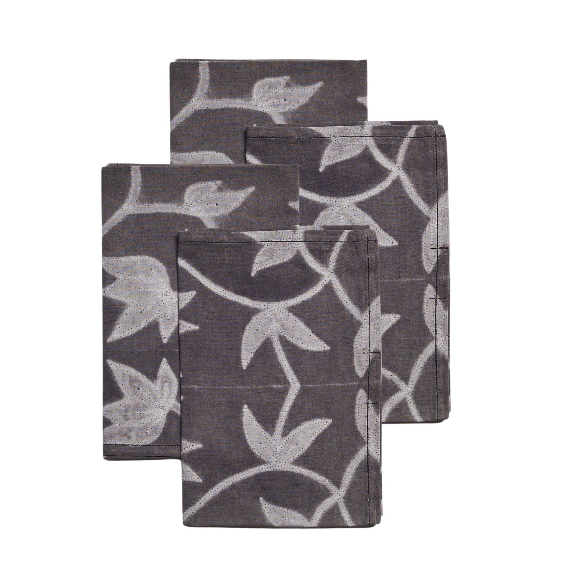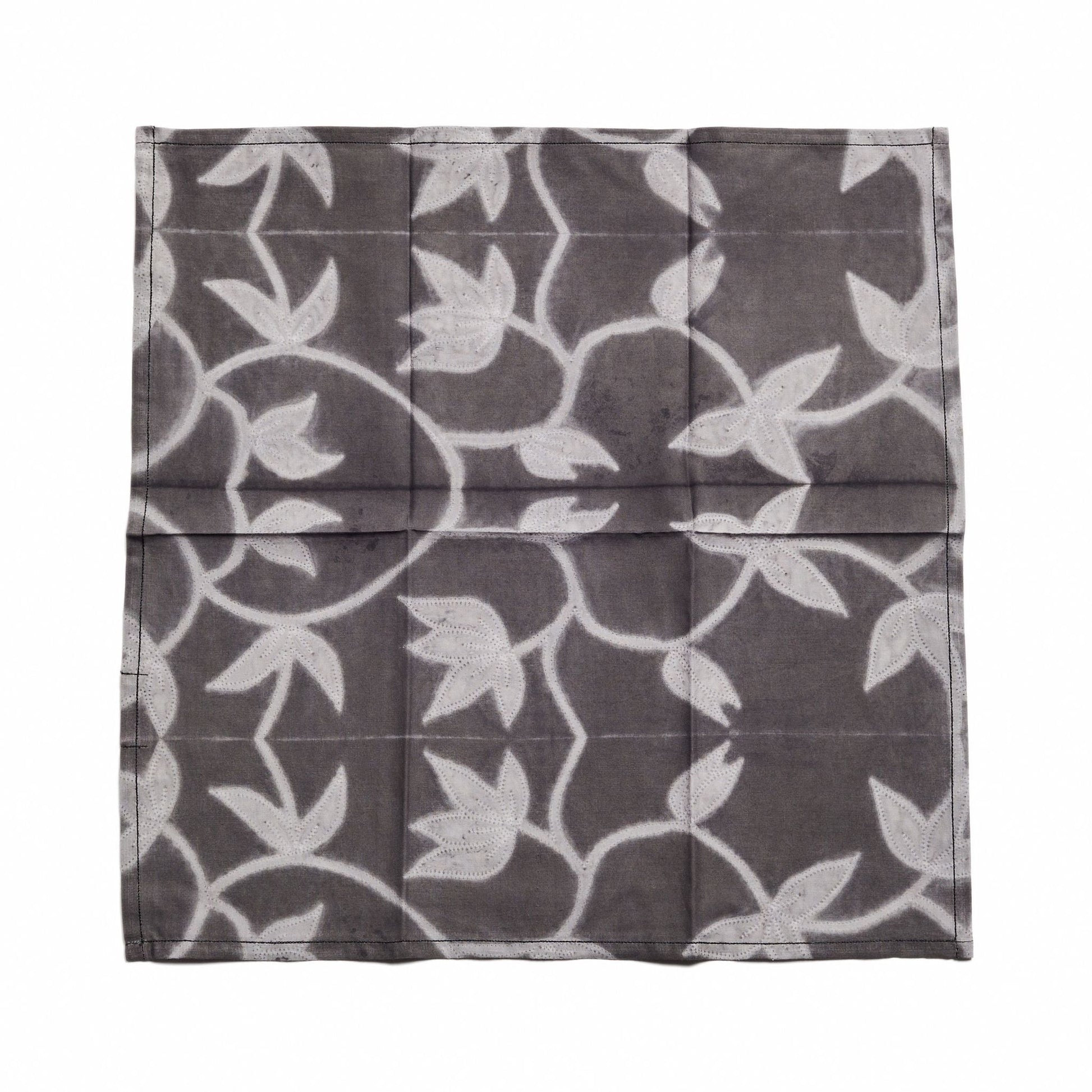 Folio Black table napkin is a unique modern artisanal napkin. Created artistically and ethically by artisans in India using shibori print technique, using only pure natural dyes. It is a pure statement piece that adds modern and timeless quality as a table ware accessory. Classic & timeless in design, Folio napkin in black is a sustainable luxury statement. Created all by hand these napkins are made in small careful batches, each piece being unique as it is completely handcrafted. Natural elements local to the artisan clusters are used to custom create dyes for this production. Each order includes a set of 4 napkins. Material: 60s cotton ( thick ) Size: 18X18" (square) Color: Shibori floral print in indigo. Artisan base: Ethically & responsibly handmade by artisans in India Wash care: Gently hand wash separately. Hang dry in cool shaded place. What Makes Your Purchase Sustainable? 100% organic dyes sourced locally and made to order. Support employment of women artisans. 100% handmade manufacturing process by artisans. All pieces are sun dried / air dried to conserve energy. Use only 100% natural + biodegradable responsibly sourced materials. Small batch production ensures higher quality & less wastage.