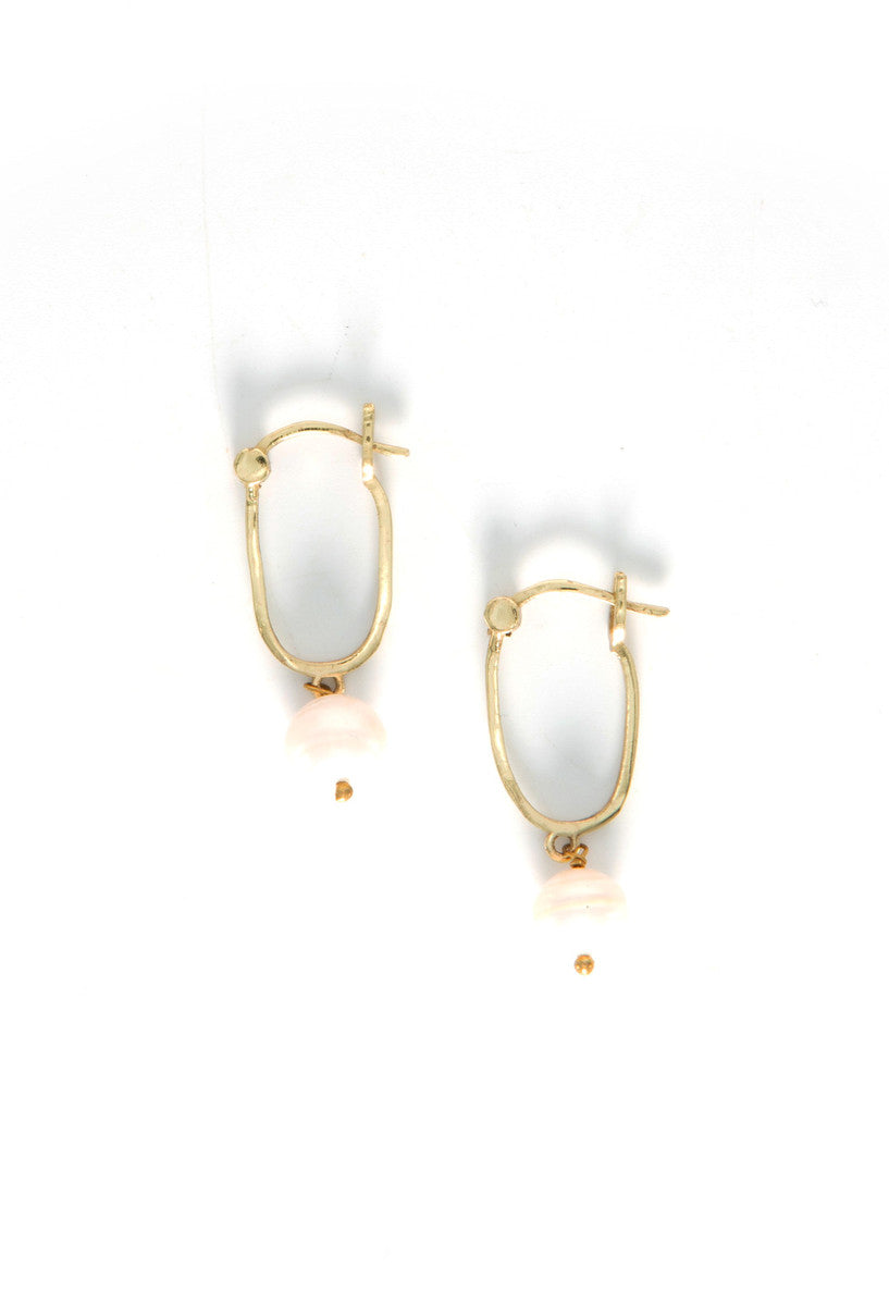 Earrings measure 1. 25". Made from pure brass recycled metal and freshwater pearl. Nickel-free.