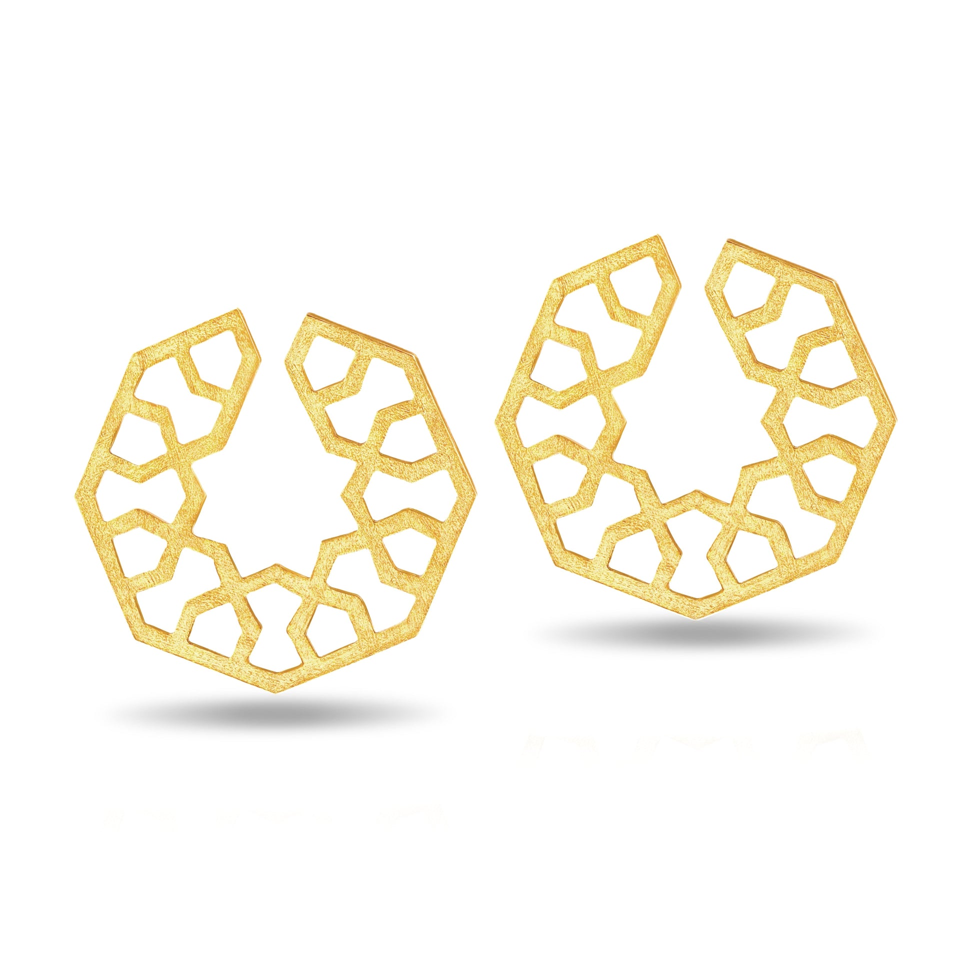 Octagonal geometric cutout hoop earrings. Stud fastening.
