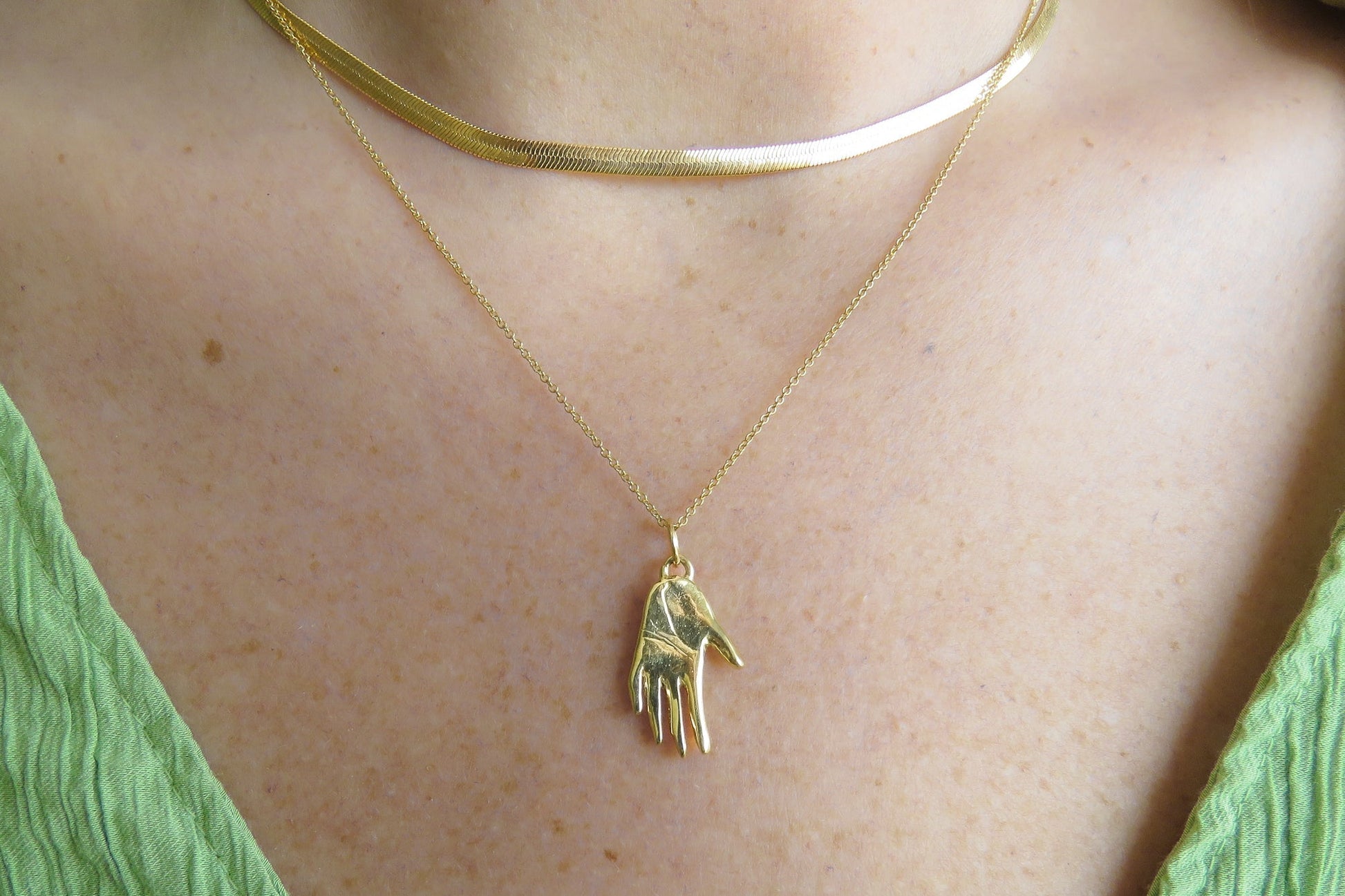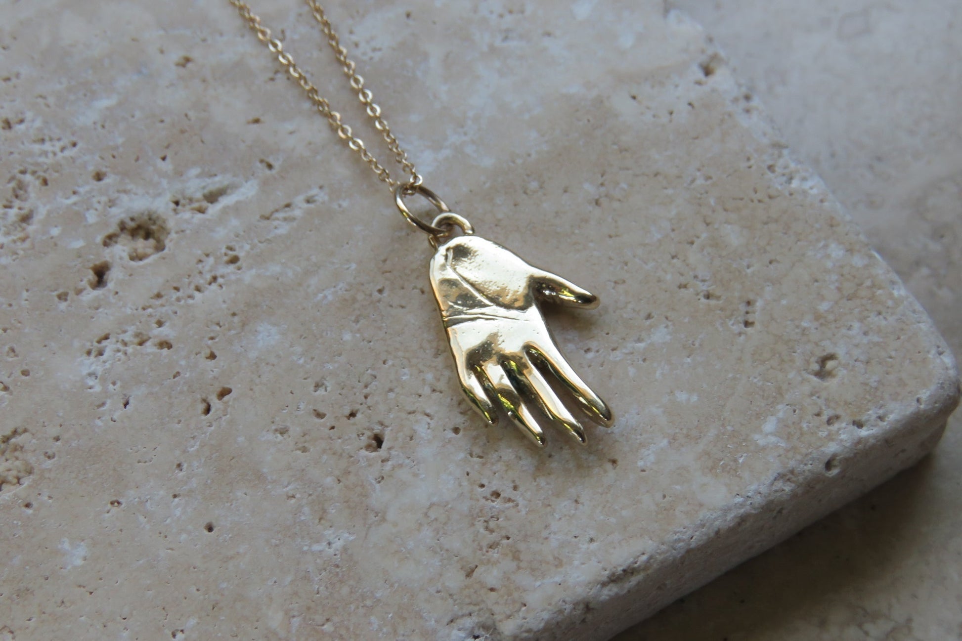 Our expressive hand pendant signifies strength, guidance, and connection. Hands are considered the “tool of tools. ” Wearing the gold hand pendant allows you to grasp life's opportunities with confidence. Our gold hamsa necklace serves as an artifact of protection, to be worn and embraced throughout life's journey