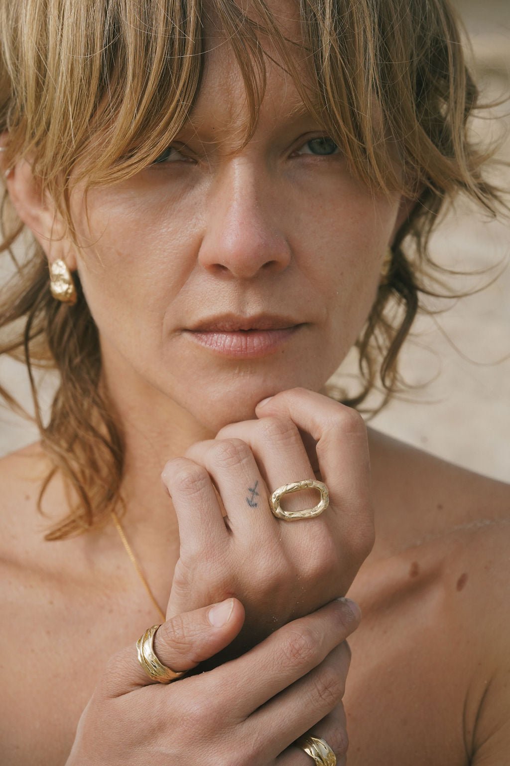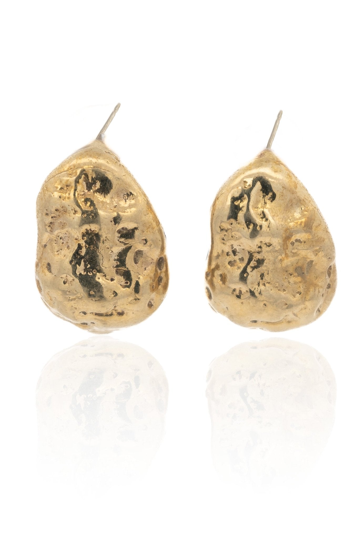Each earring boasts a unique, textured surface, reminiscent of natural gold nuggets, offering an organic aesthetic that stands out. Perfect for those who appreciate artistic, sculptural jewelry, these chunky dome earrings add a touch of earthy elegance to any outfit.