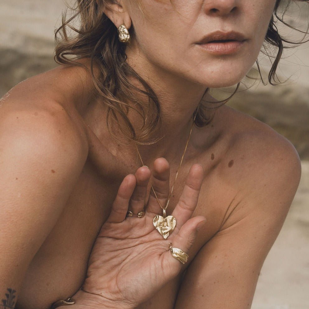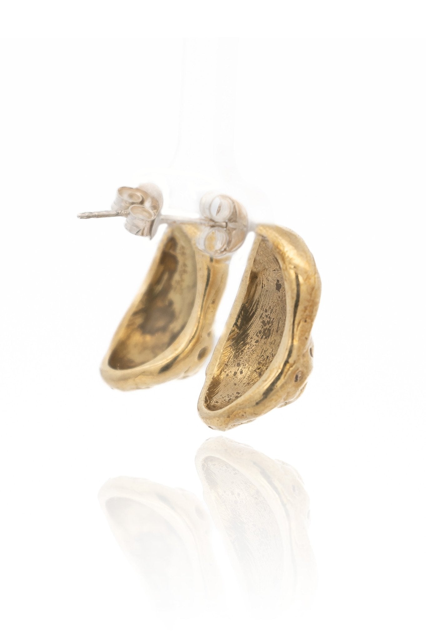 Introducing our Gold Nugget Dome Earrings, a bold statement piece that evokes the raw beauty of unearthed gold nuggets. Crafted from an original wax carving and cast in eco-friendly recycled brass, these earrings feature a hollowed design for maximum comfort and wearability.