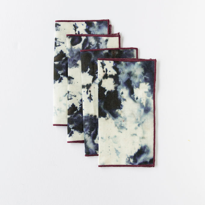 These cocktail napkins add a touch of elegance to any gathering. Choose from a grey, plum, or chartreuse trim. The marble pattern is cool + sophisticated, making them the perfect accessory for your next cocktail party. Designed to be as versatile as they are beautiful. Lay them flat for the perfect aperitivo napkin or fold as a lunch napkin.