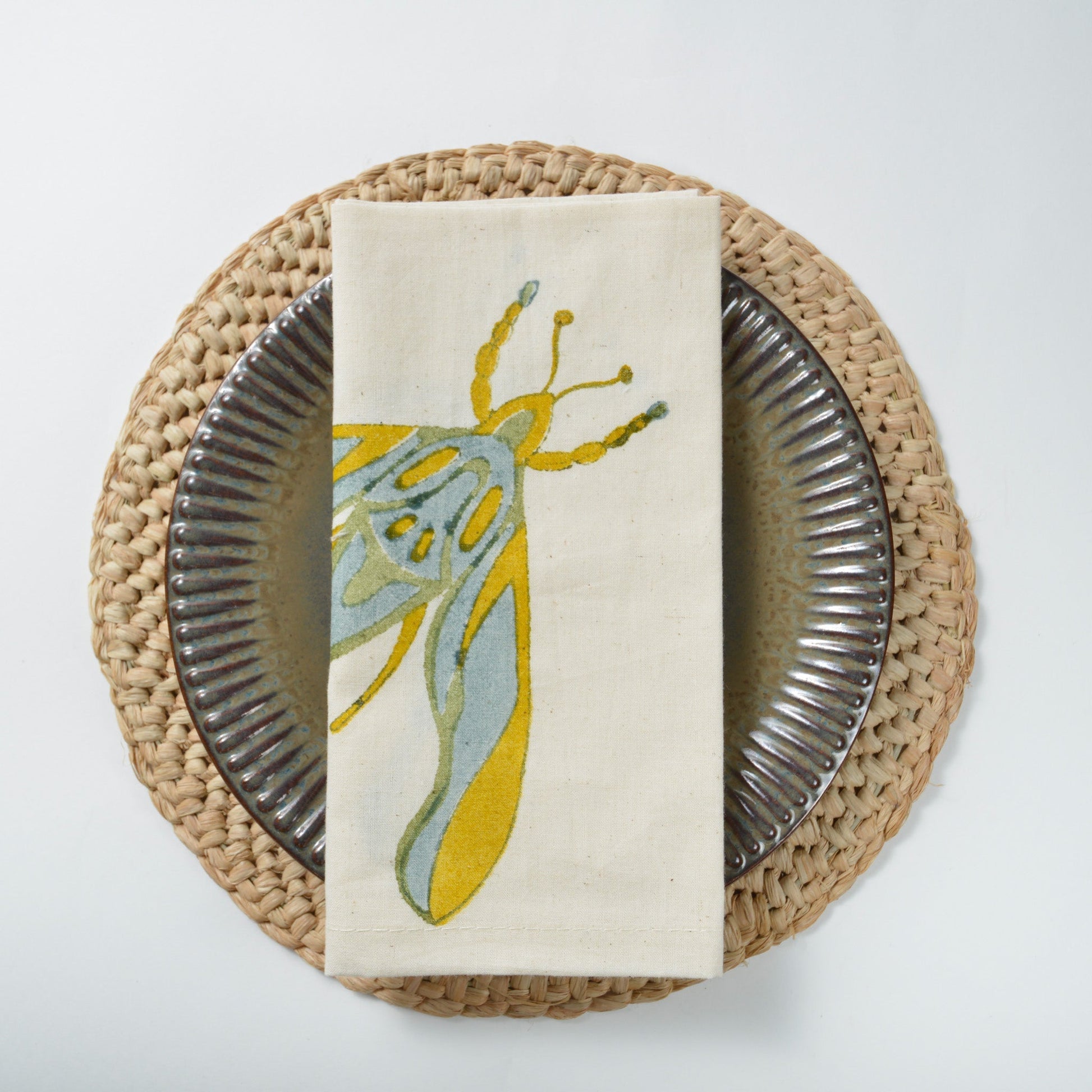 Hand Block Printed Napkin ~ Dawn Elephant Moth