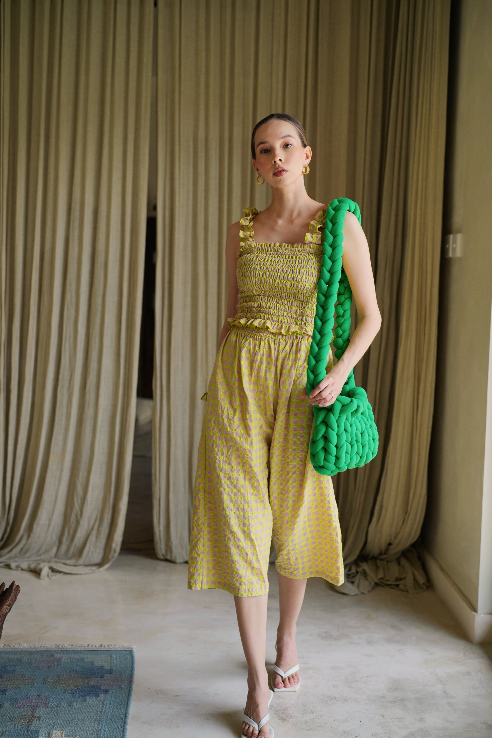 Hannah Gingham Wide Leg Crop Pants in Lemonade