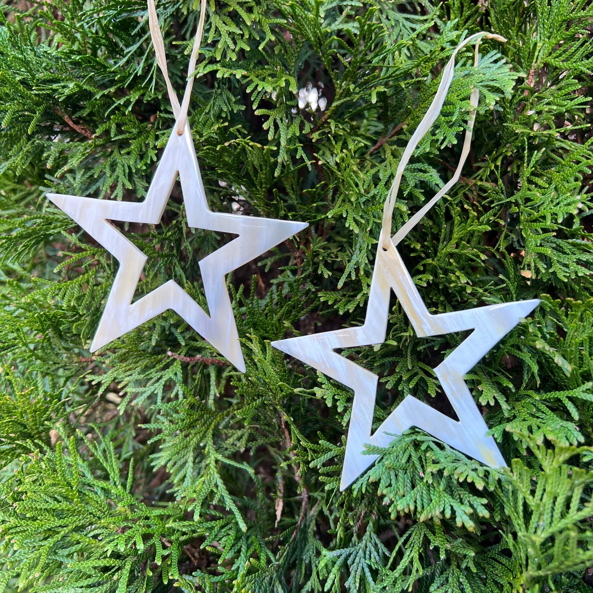 Trim your tree with a little Fair Trade decor. The delicately shaped Open Star ornament, carved out of cattle horn, adds a thoughtful element to your holidays. Assorted light color tones.
