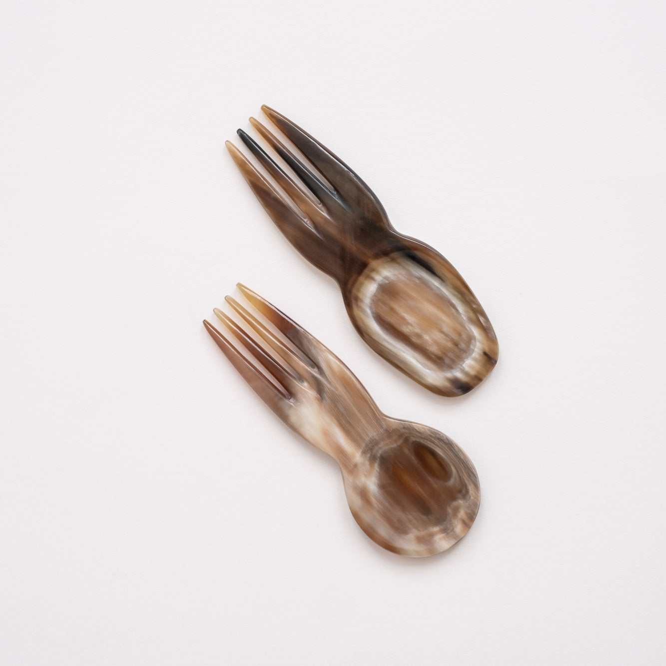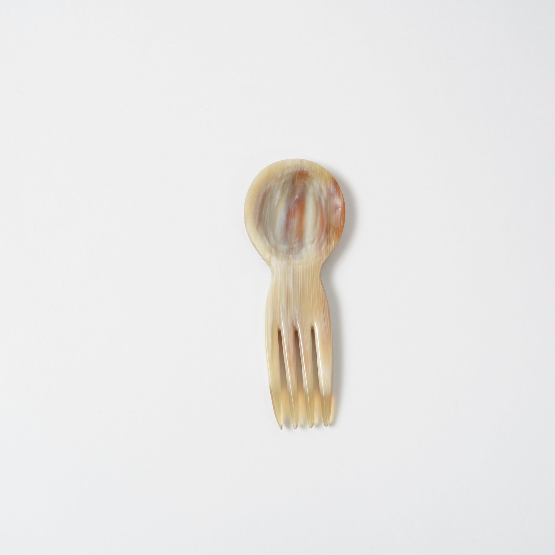 Ditch the plastic and take your upcycled style on the go with this Ankole Horn Travel Spork. With the combined function of both fork and spoon, this handy travel utensil will quickly become your "go to" for quick weekday lunches or elegant evening picnics. Assorted color tones.