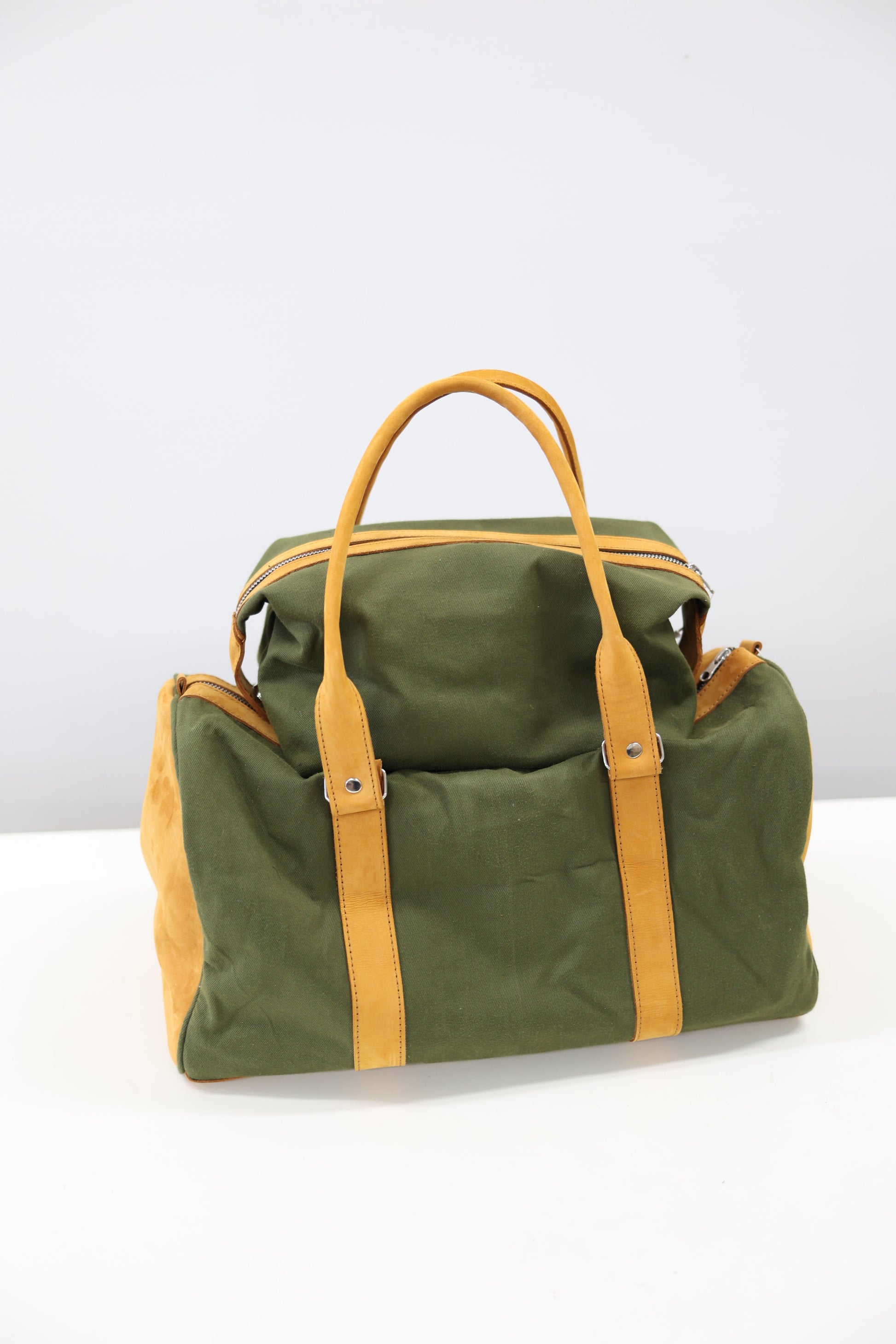 Materials: leather, olive green canvas, kikoi lining, metal zipper