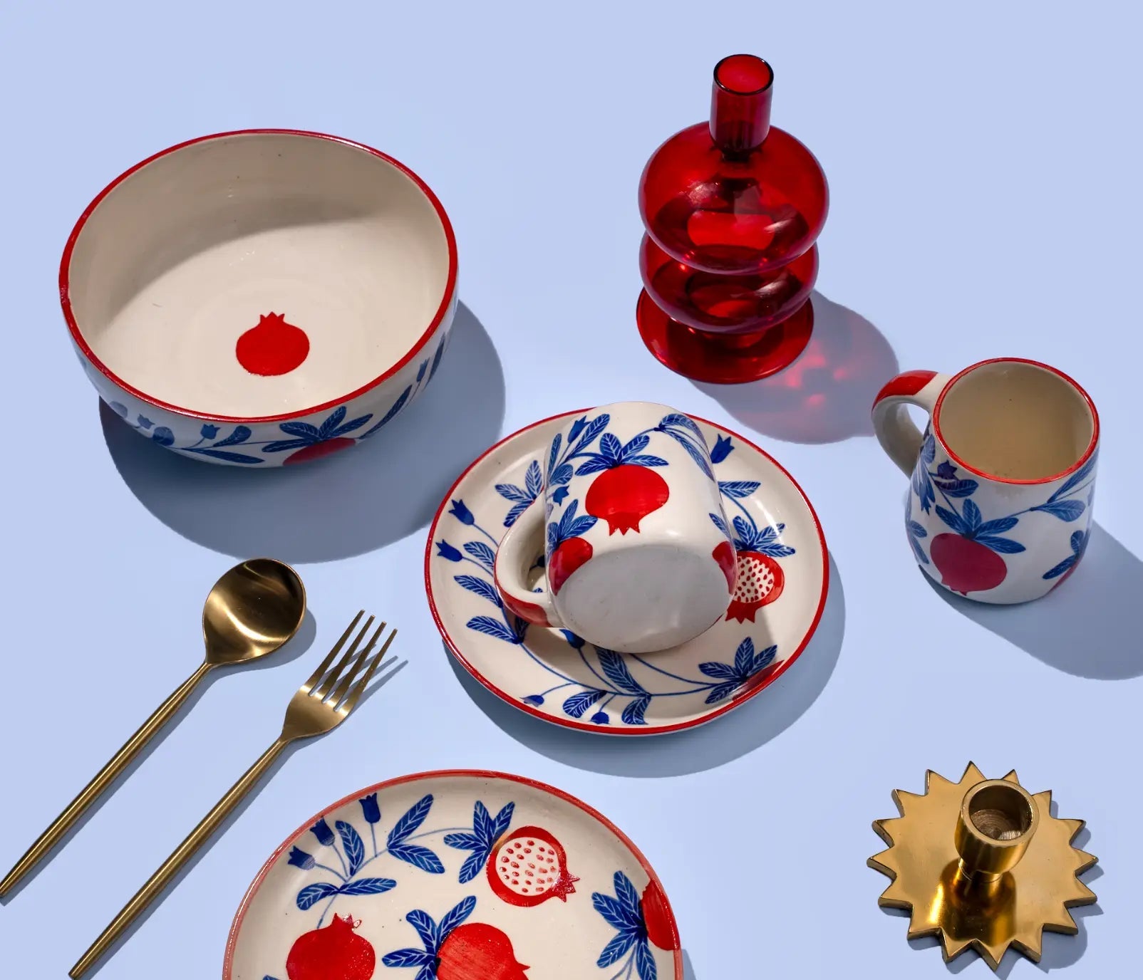 The Anaar bowl features a captivating design, making it a striking addition to your tableware collection. This bowl adds an artistic touch to your dining experience, perfect for one pot meal, salads, maggi or vibrant culinary creations. • Material - Ceramic• Size-7x2. 5 Inches• Weight - 850 gms• Color -Red & White• Hand Made in India• Microwave & Dishwasher Safe