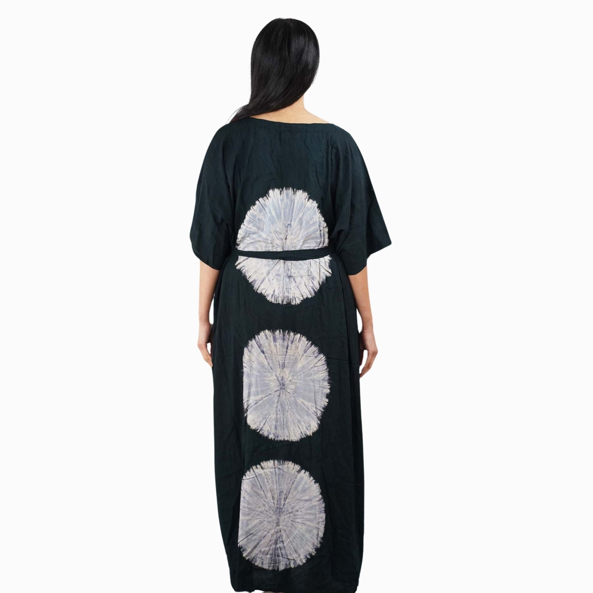 Kaftan Tie Dye Long Dress Shibori Black White Floral Pattern