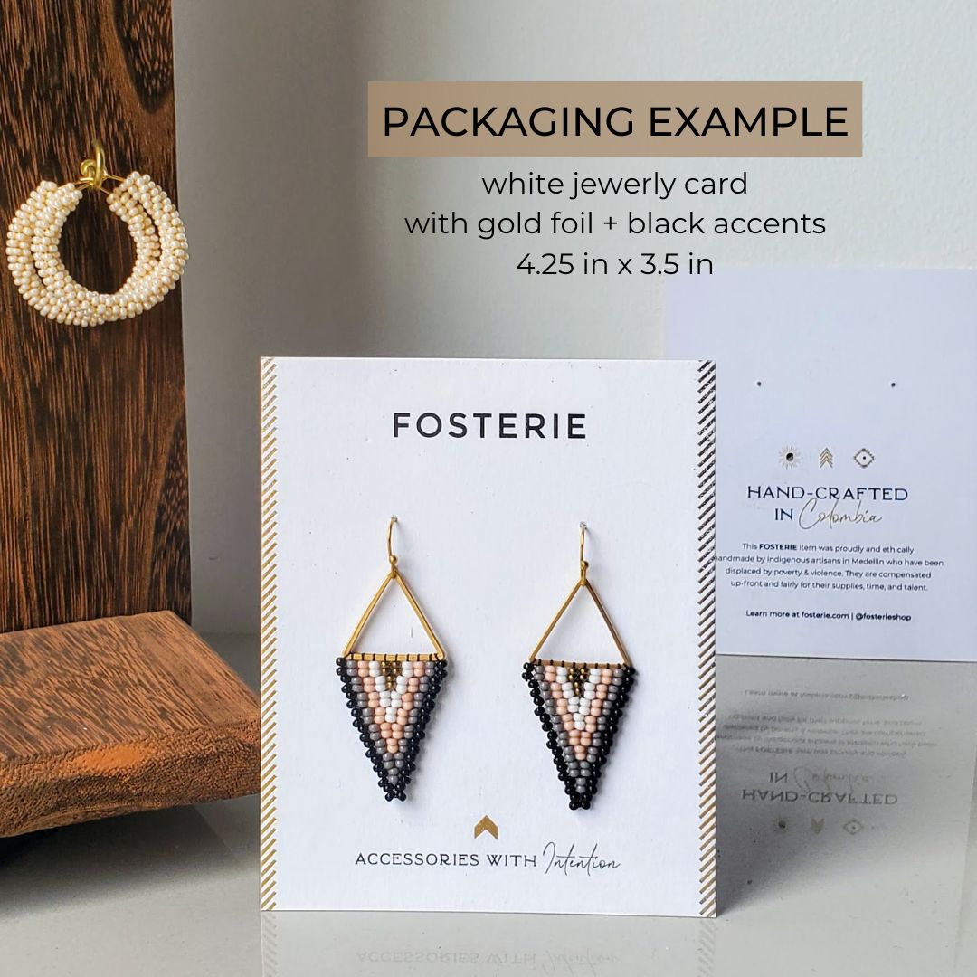 Founded on the belief that fashion + compassion can make a positive impact on the world, each FOSTERIE exclusive product is proudly and ethically handcrafted in Colombia by our team of indigenous Embera artisans. Our pieces have been infused with love + joy and our hope is that these sentiments remain each time you wear them. Your support provides a means of upwards social mobility for our makers, ensuring fair wages and safe working conditions. Learn more about our mission + makers at Fosterie.com.
