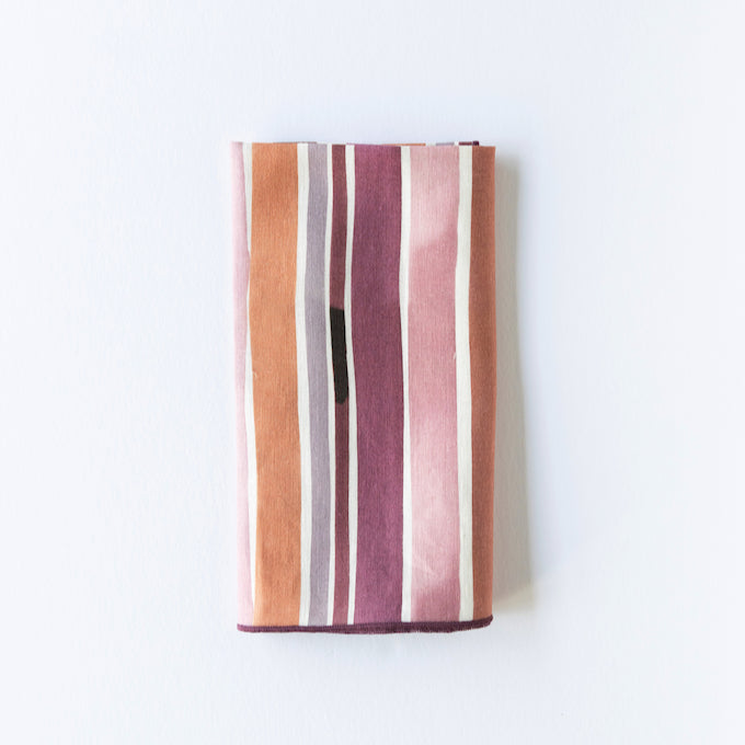 NEW for Spring. Set a stunning table with our Lisbon Stripe Napkins. Hand-painted in a myriad of pink, plum, maroon, brown, and rust tones. This print makes a beautiful foundation for a festive, statement-making Spring table. Pair with the matching placemats, tablecloth, or runner for a complete look.