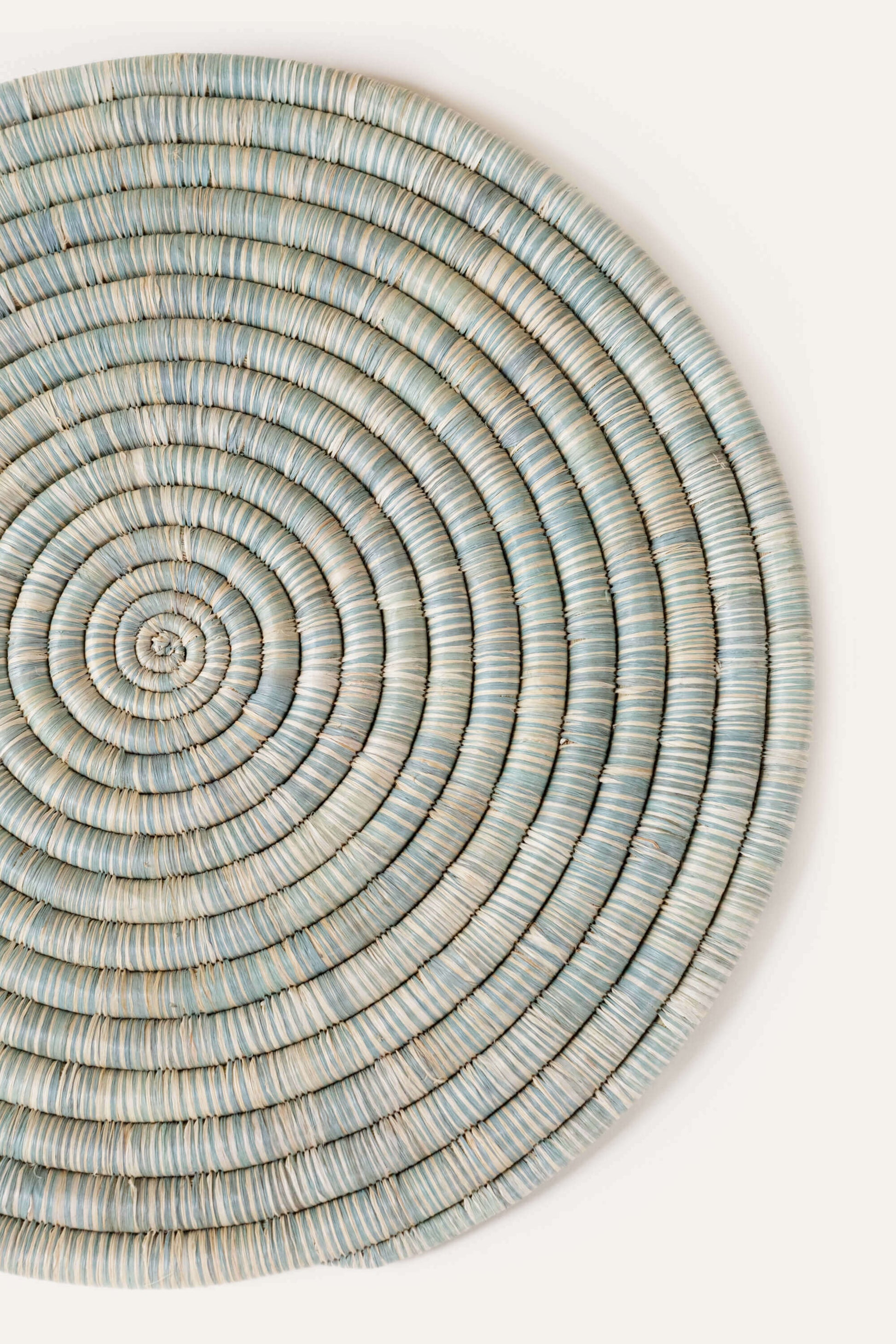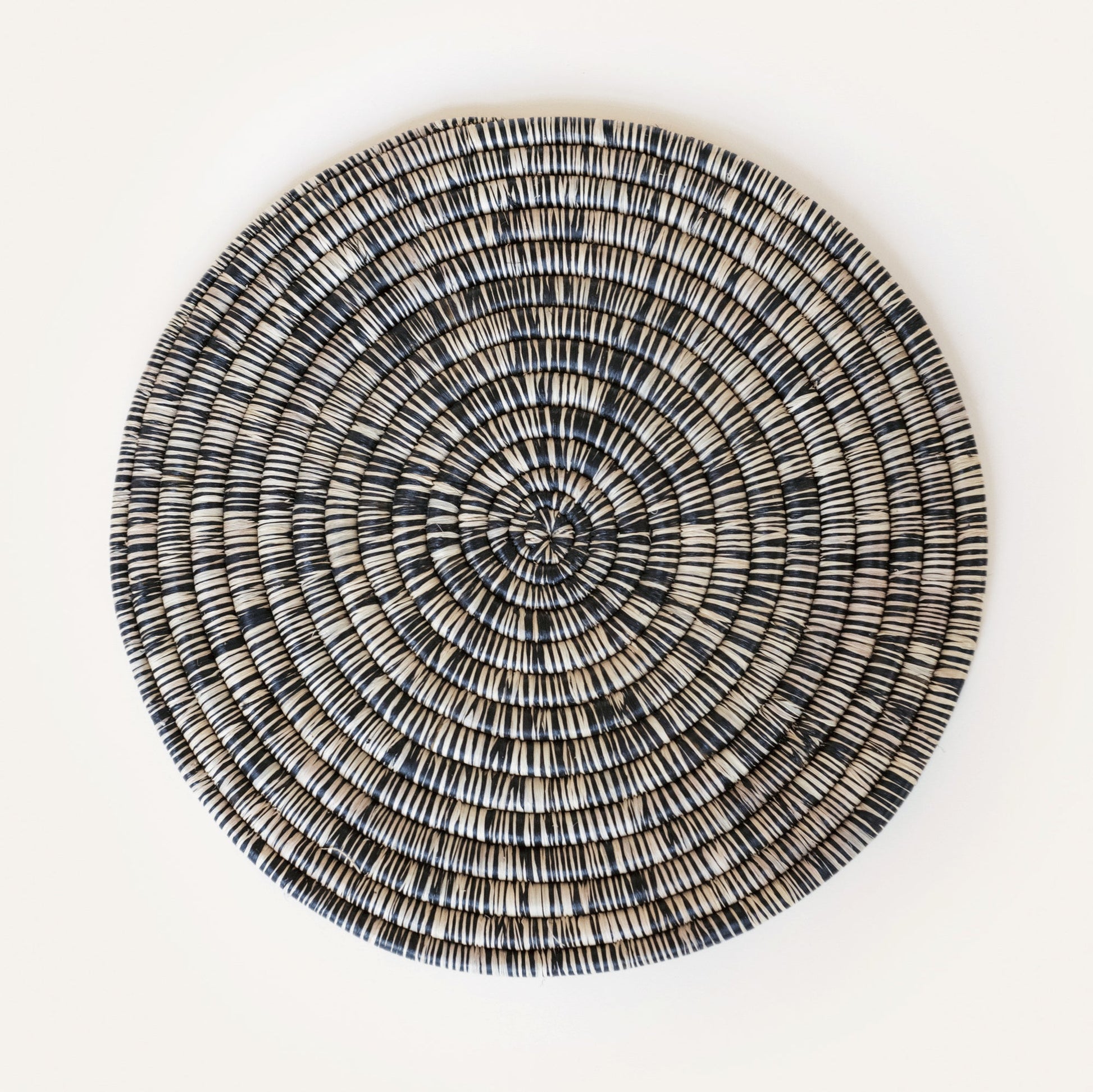 The Flat Raffia Platter is a unique multifunctional decor piece that combines both natural and black raffia fibers.