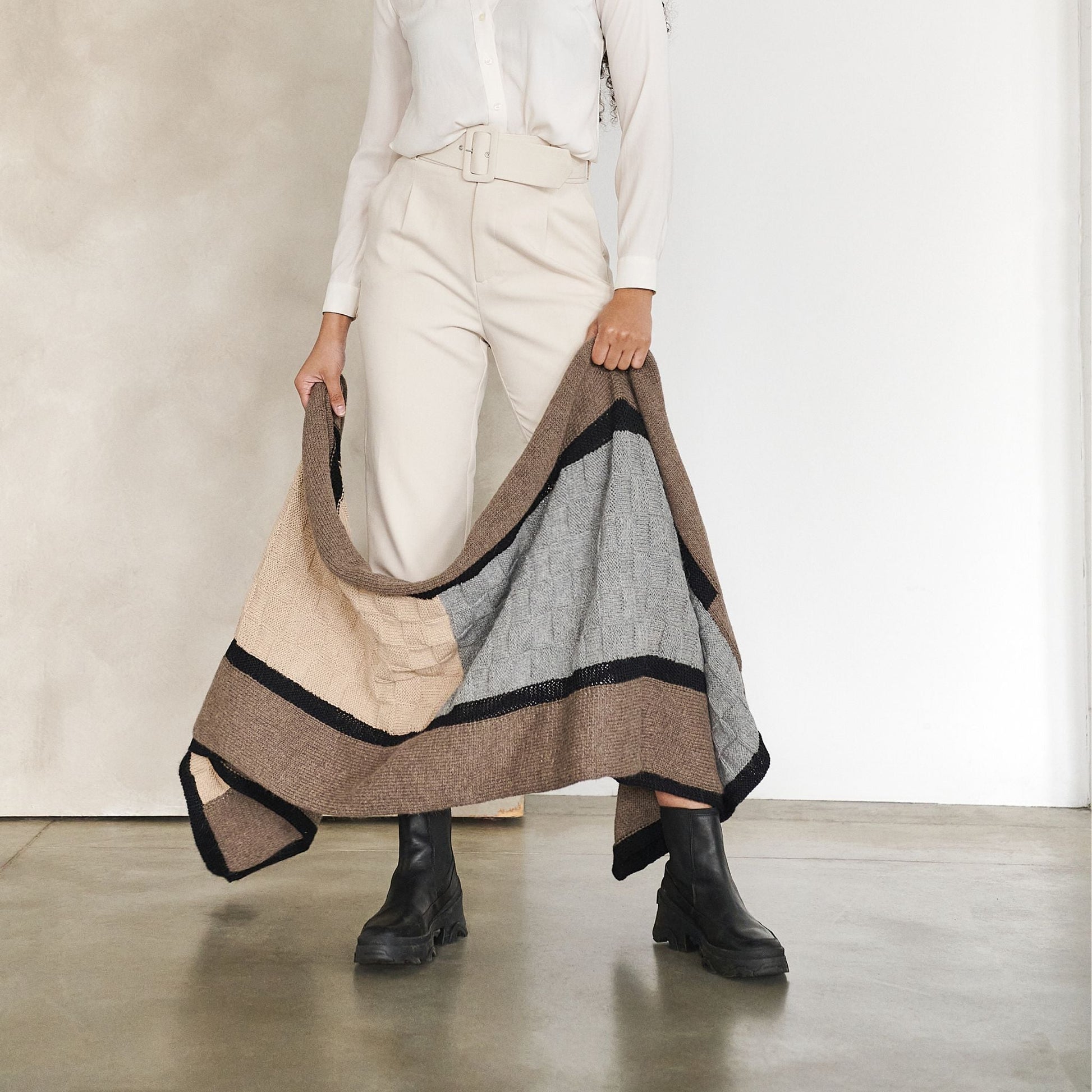 Muhu Brown Gray Hand Knitted Peruvian Alpaca Blanket / Large Plush Scarf