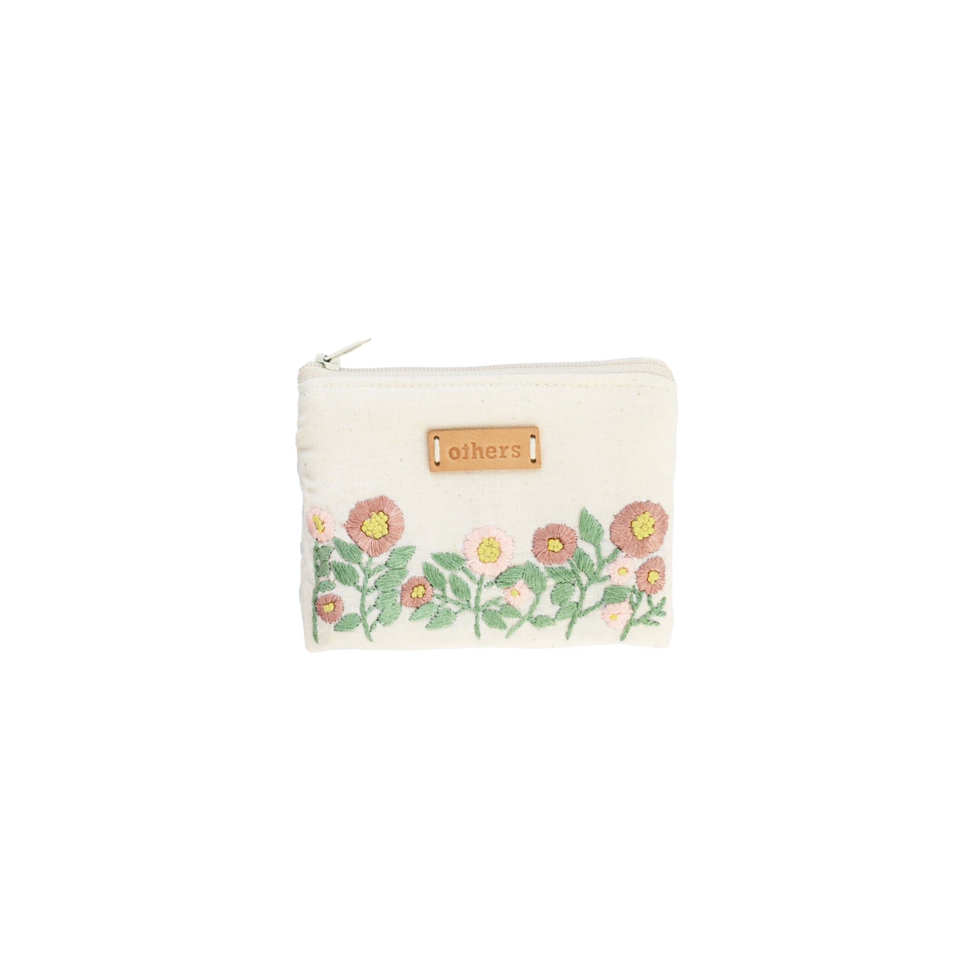 Others Embroidered Coin Purse White Floral Pink