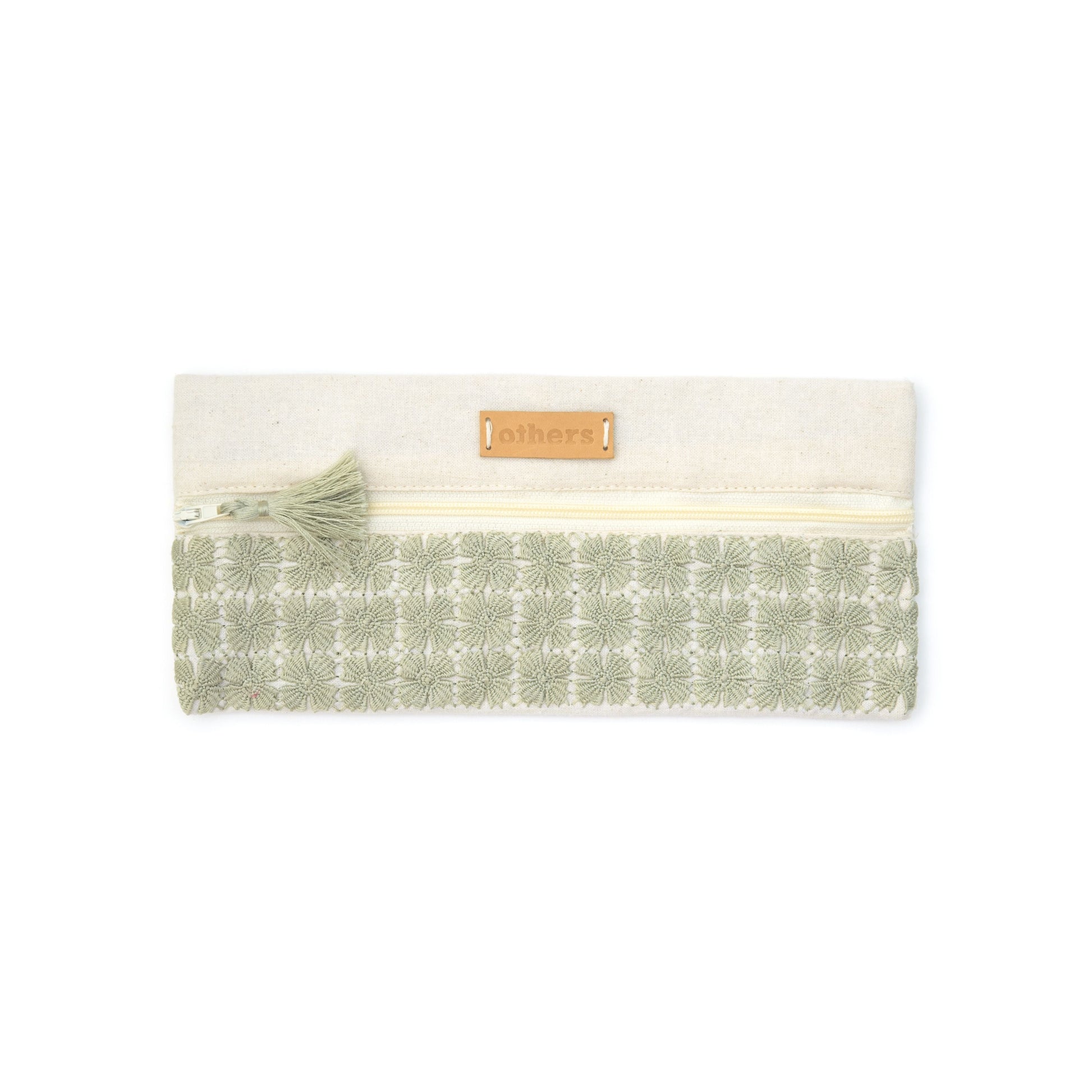 This beautiful purse/pencil case is hand-embroidered in Bangladesh with traditional ”Dhaka” embroidery. Embroidery is an important part of our production, as it can be made everywhere, even in remote villages with few other jobs available. The women can work from home at their convenience, or in the fellowship of a producer group at a local Salvation Army center. For some of our producers this is their first opportunity to earn an independent income. Working for Others supports them in providing for their families, improving their living conditions, and putting their children through school. Made in: Bangladesh Material: Cotton, foam lining, leather Size: 12 x 17cm Color: Natural, pale green