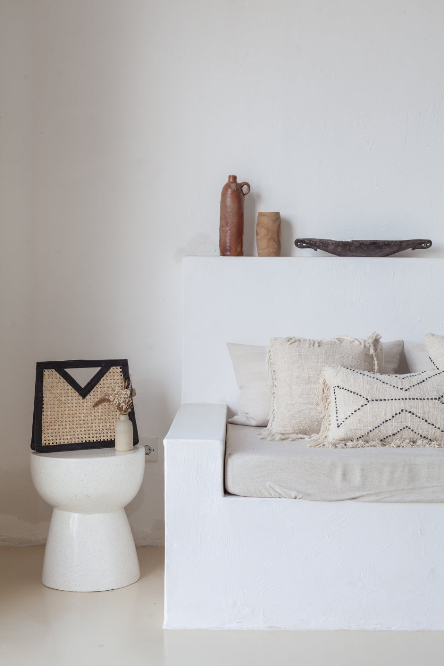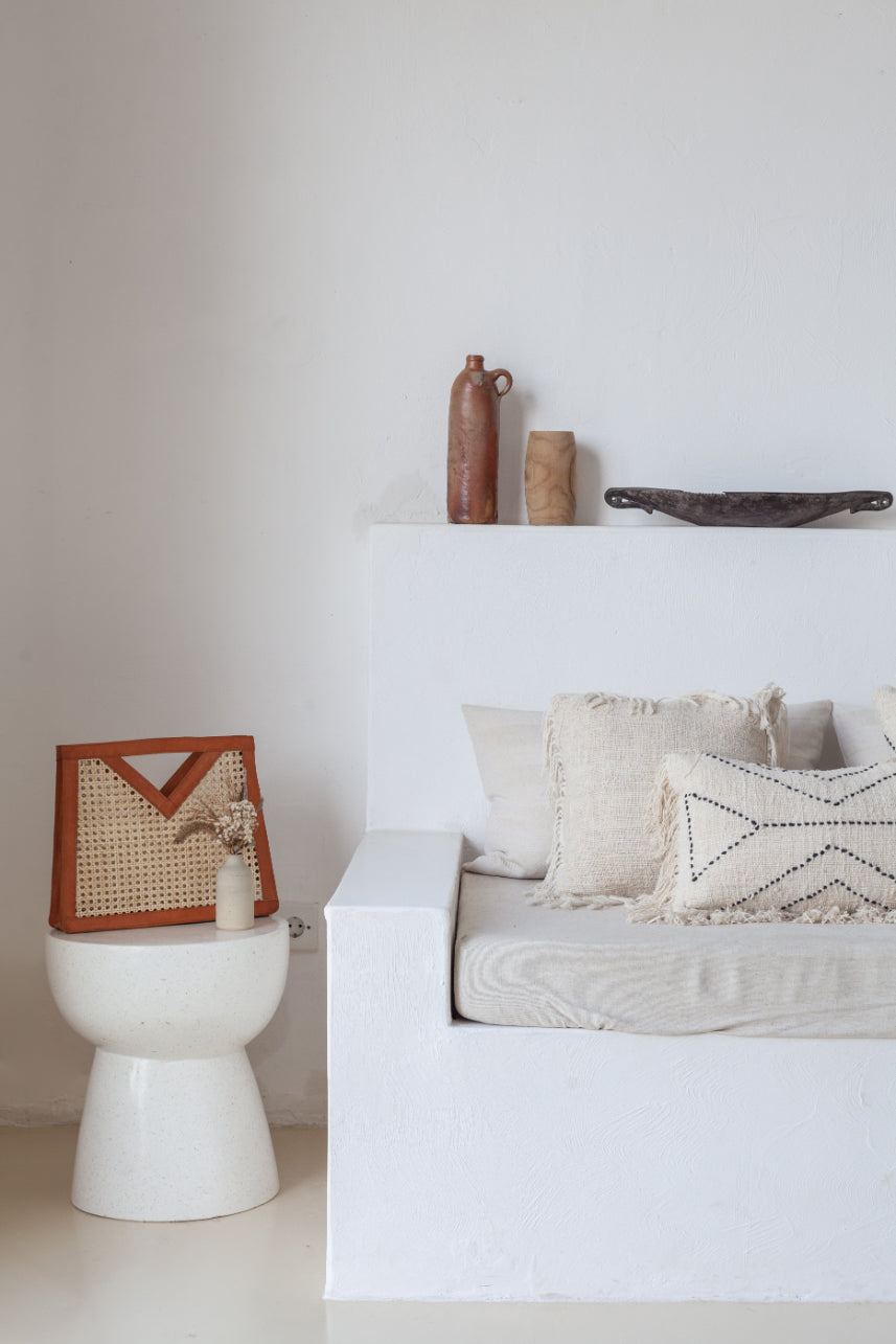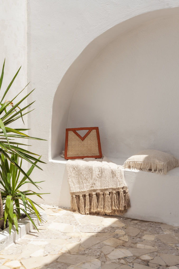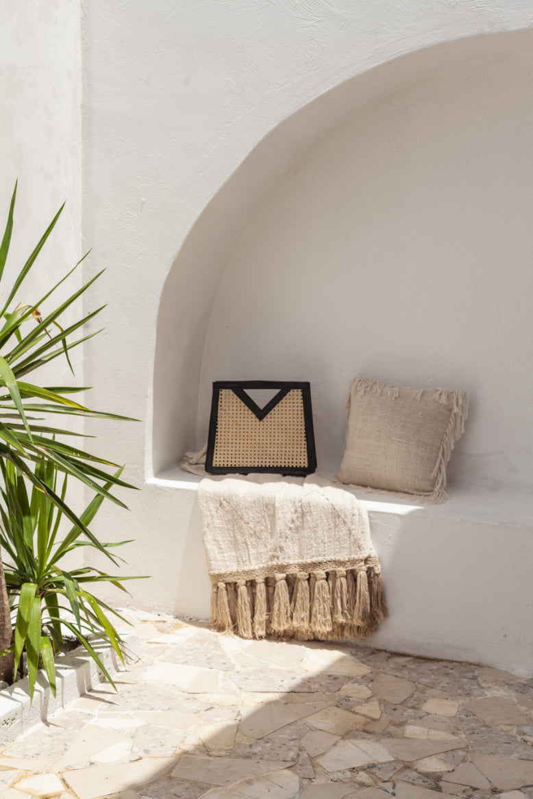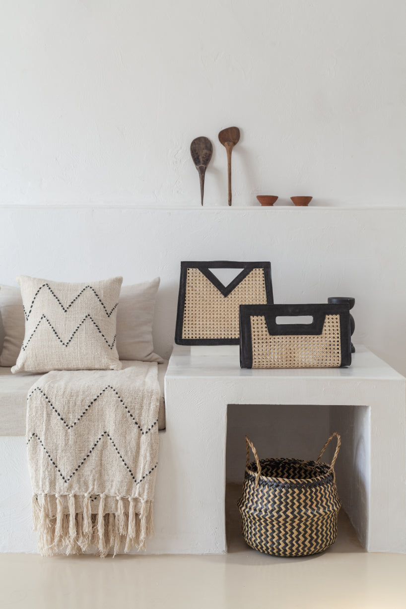 This elevated Bag features genuine leather detailing and cane webbing along with ample storage space. The natural elements of this bag combine beautifully to create a modern and bohemian feel.