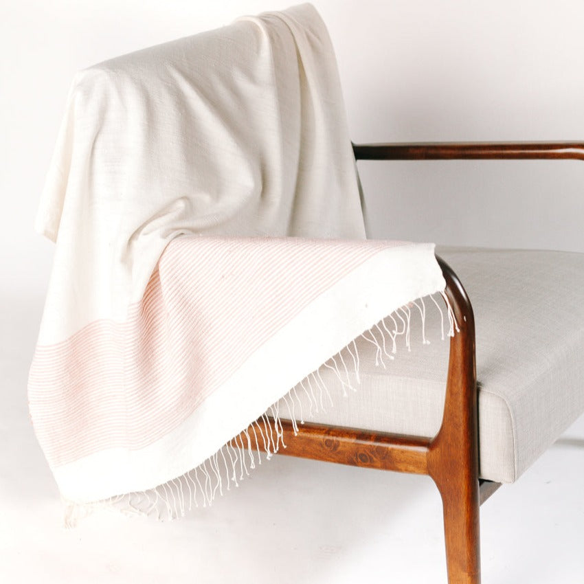 Classic, timeless, versatile. The Riviera throw features natural hand-spun cotton accented with blocks of subtle ribbed accents. This hand-woven throw is guaranteed to be one of the most useful pieces in your home. Its size, softness and light weight make it the perfect cozy wrap and the ultimate travel companion. Hand-spun Ethiopian cotton adds a uniquely rich texture that will continue to soften and become more absorbent with each wash & dry. Yes, it's machine washable!