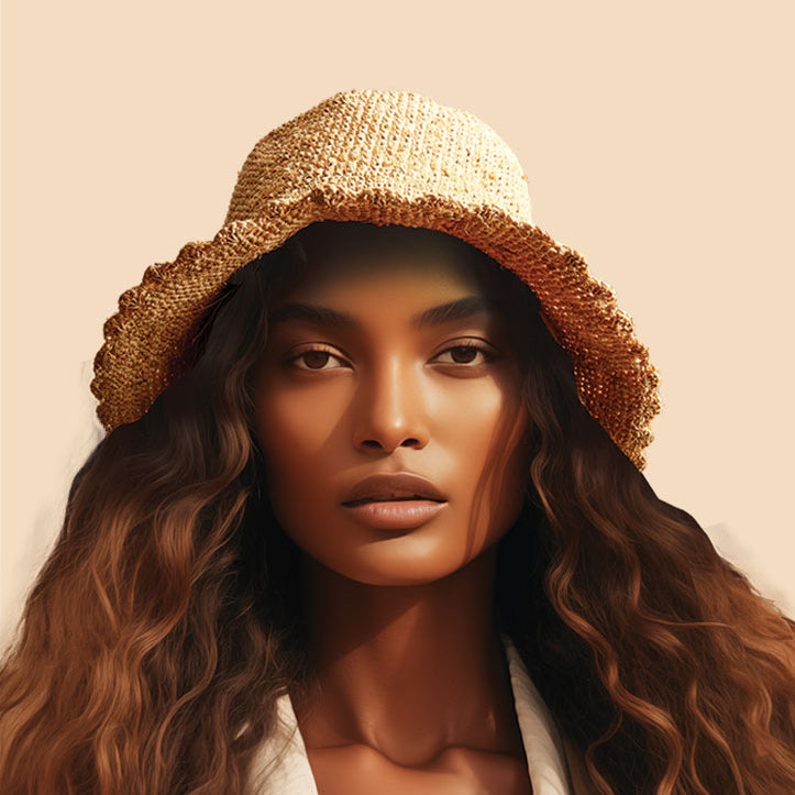 The Rwama Packable Raffia Bucket Hat is the perfect summer accessory. The scalloped brim elevates the classic bucket hat shape while crocheted raffia adds texture and durability.