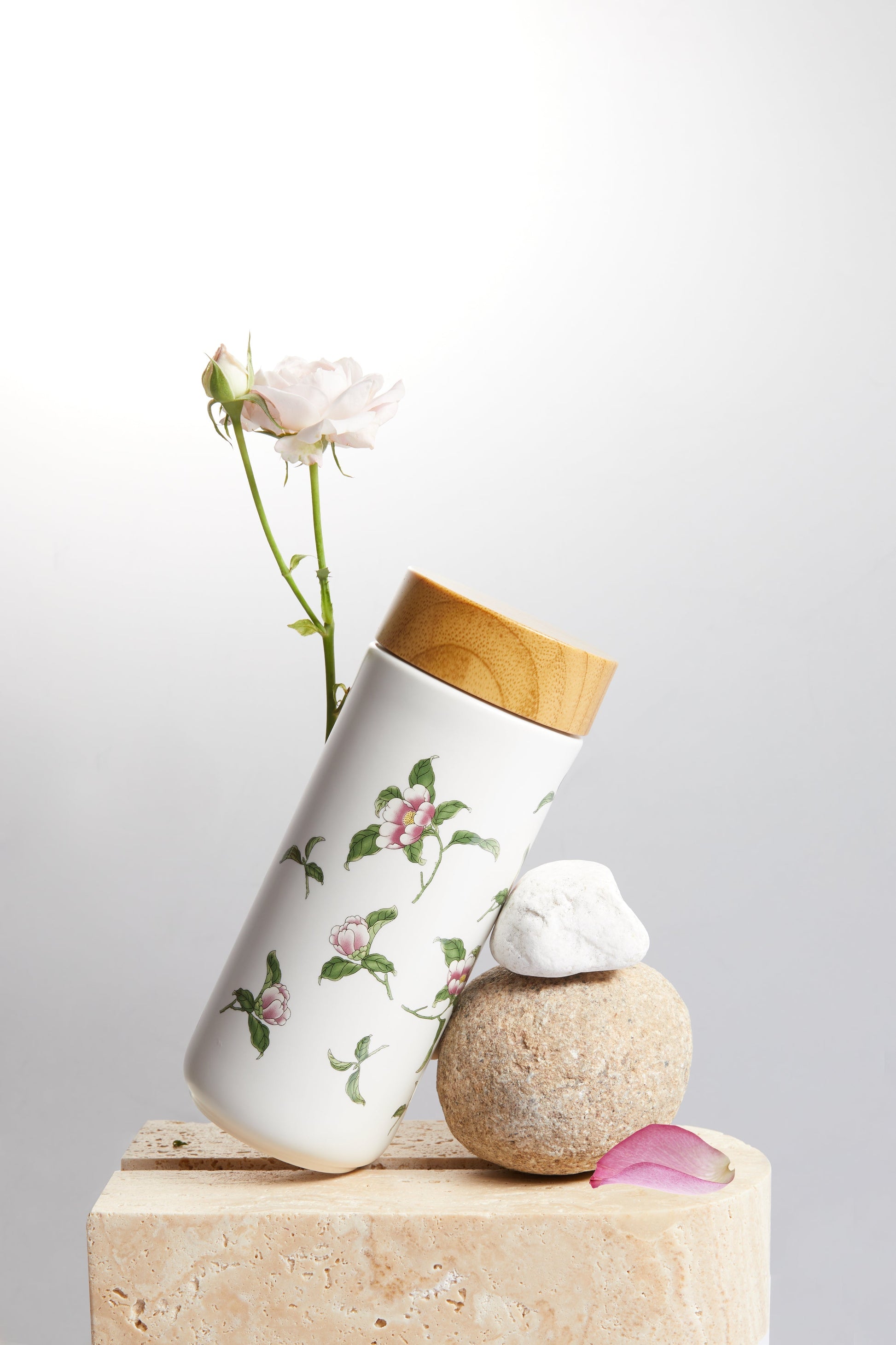 The camellia represents warmth and vibrant life, symbolizing renewal and vitality.